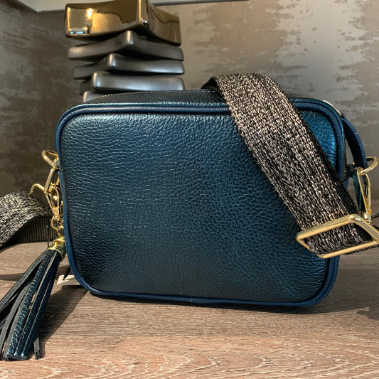 Elie Beaumont Teal Metallic Leather Crossbody Bag