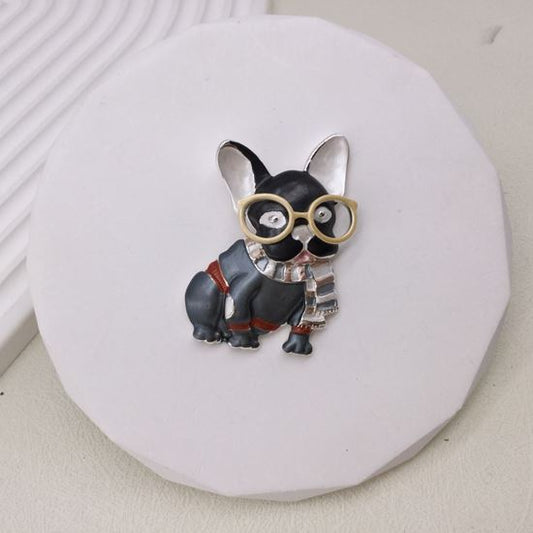 French Bulldog in glasses Magnetic Brooch