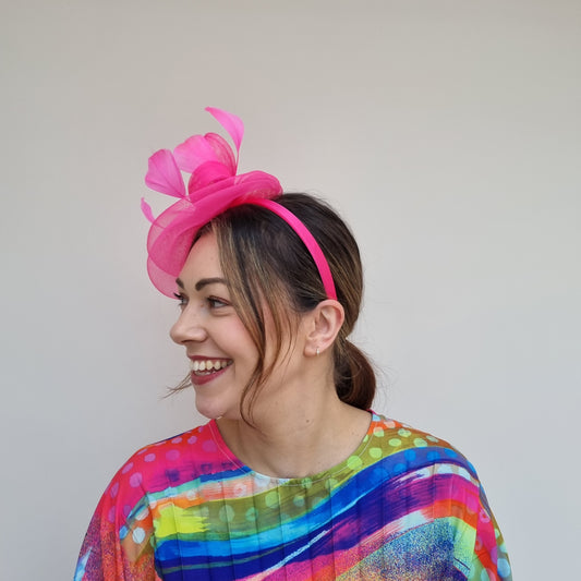 J Bees JB24/20 Net Bow Fascinator in Pinks