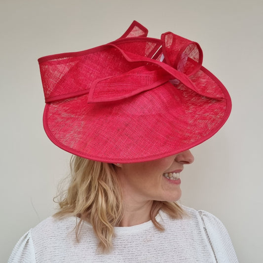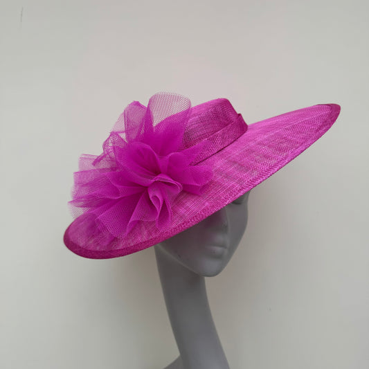 J Bees JB25/96 Fuchsia Pink Boater Hat on Headband
