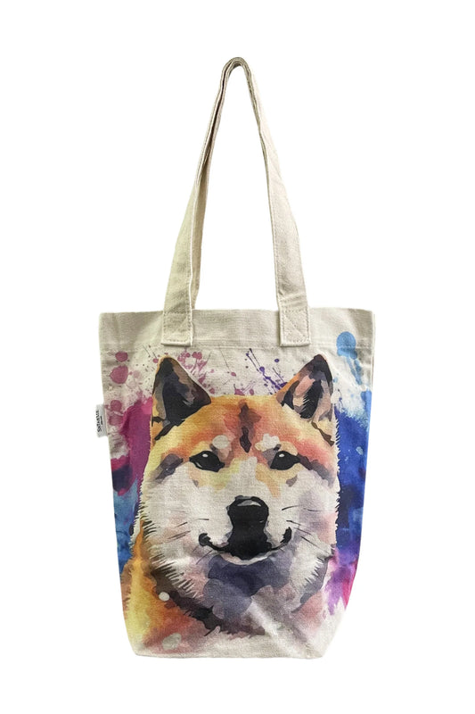 Shiba Inu Dog Print Cotton Tote Bag