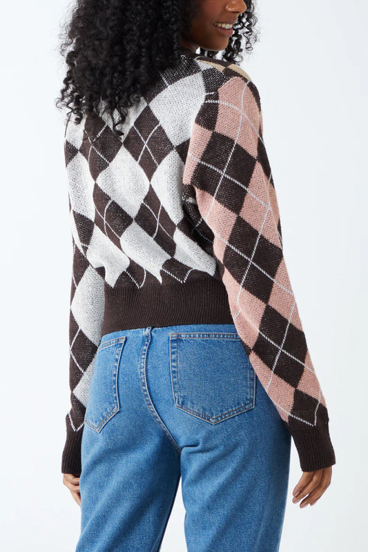 Arygyle Pattern Block Cardigan