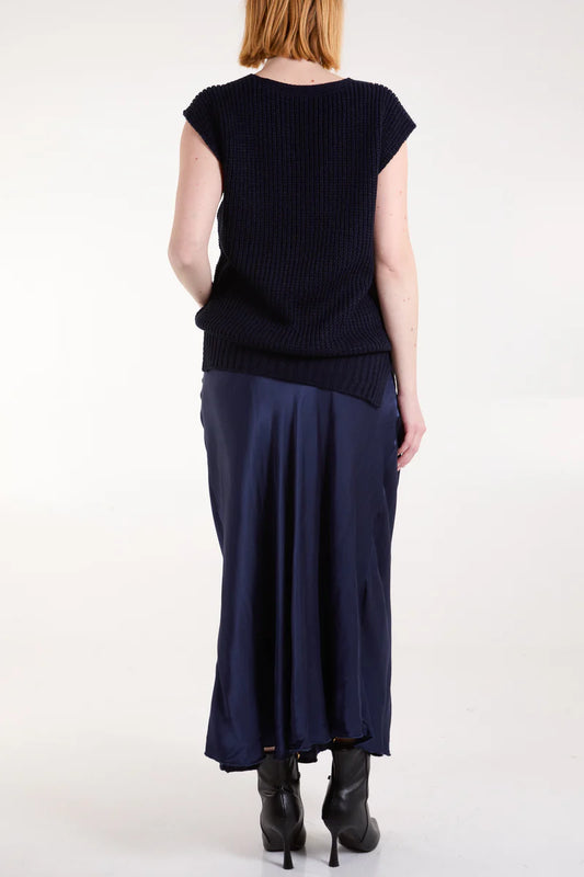 Waistband Satin Midi Skirt