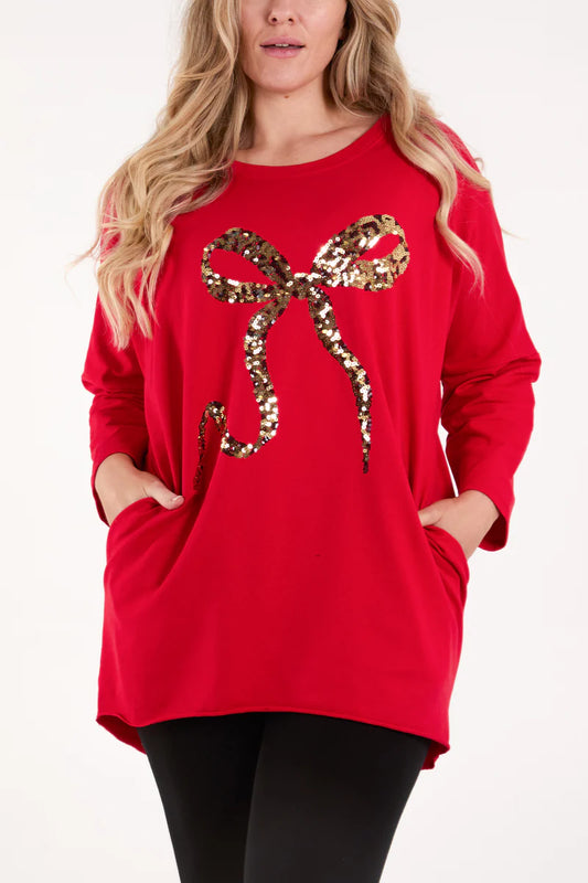 Sequin Bow Sweatshirt with Pockets