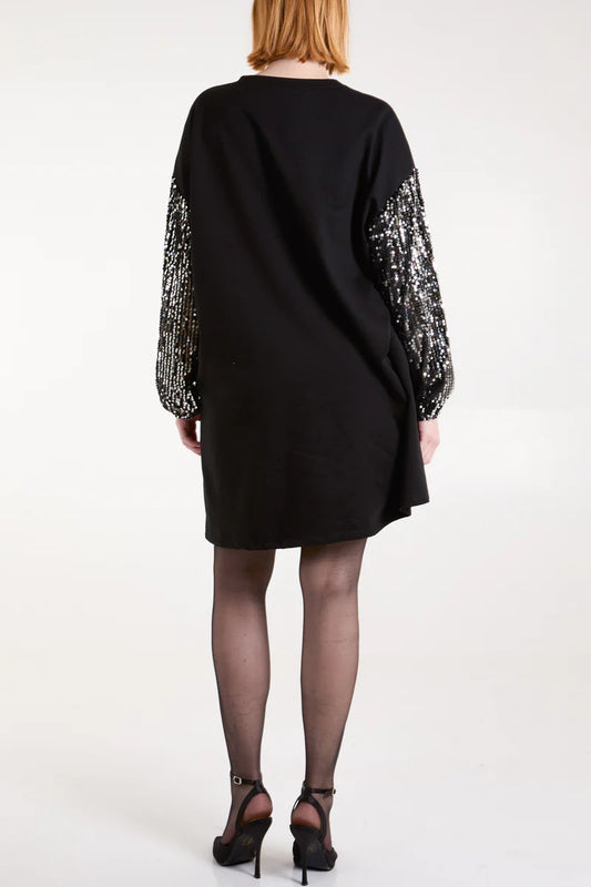 Black Sequin Sleeve Pocket Sweatshirt