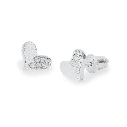 Life Charms E135S Sparkly Heart Silver Studs Silver