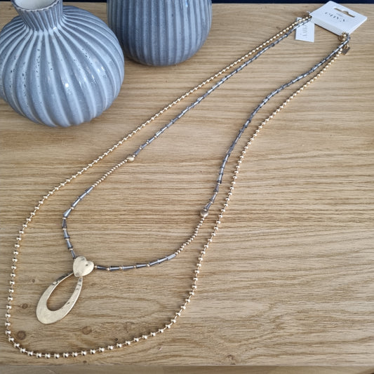 Envy Long 2 layer bead necklace Silver