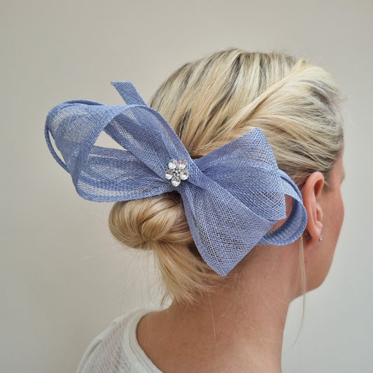 J Bees JB25/71 Cornflower Blue Crin with Satin Edging and Detail Fascinator