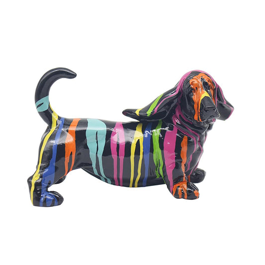 Drip Art Basset Dog Statue in Black
