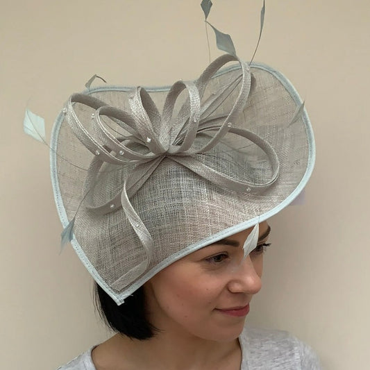 Max and Ellie HF1 Small Fascinator on Headband in Grey & Silver