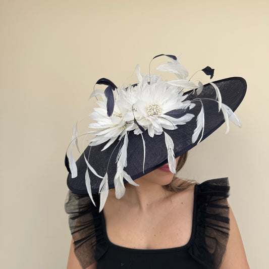 J Bees JB26/1020 Navy Blue & White Feather and Ribbon Hatinator