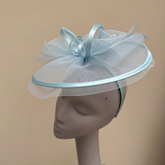 J Bees JB25/71 Cloud Baby Blue Crin with Satin Edging and Detail Fascinator