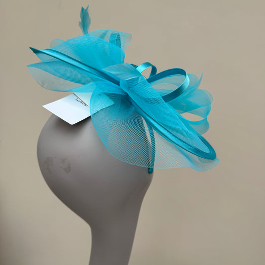 J Bees JB25/71 Capri Blue Crin with Satin Edging and Detail Fascinator