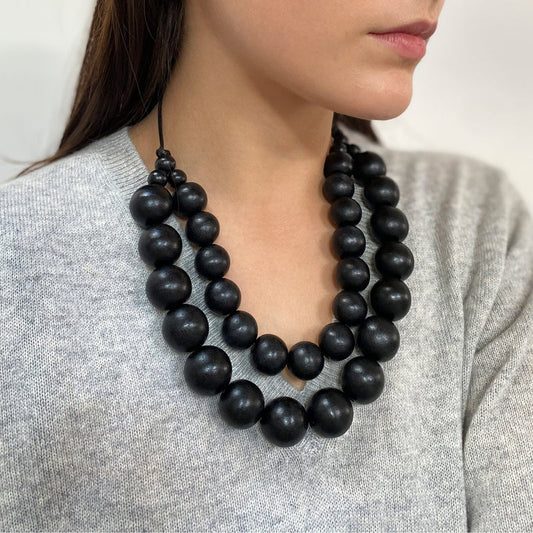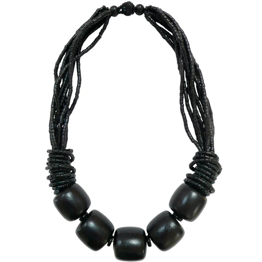 Lotus Feet Black & Grey Circle Multi Layered Necklace