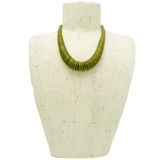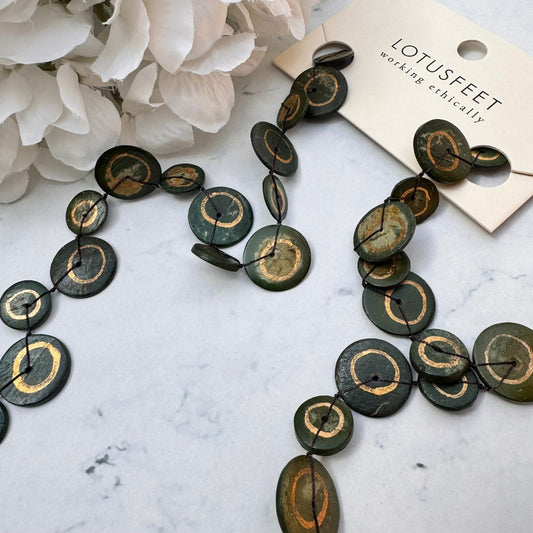 Lotus Feet Moss Green & Gold Coconut Shell Necklace H216 Moss Green