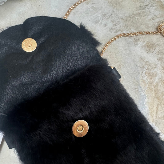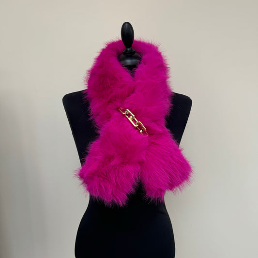 Malissa J Fur Collar Scarf with Gold Chain Strap