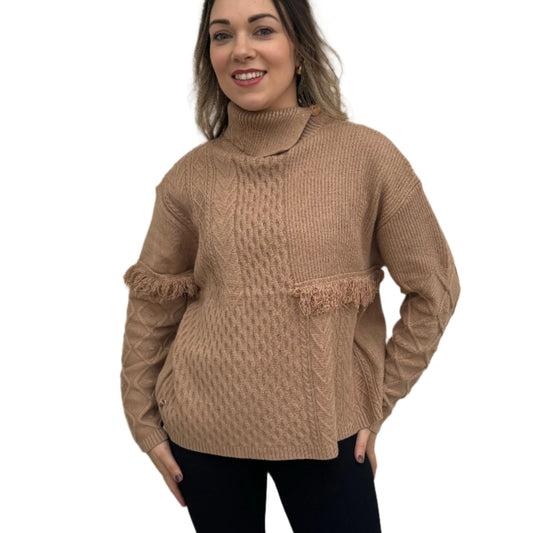 Malissa J WF2246 Ribbed Slit Neck Fray and Cable Knit Jumper