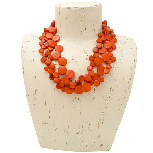 Lotus Feet NC3005 Orange Multi Row Necklace