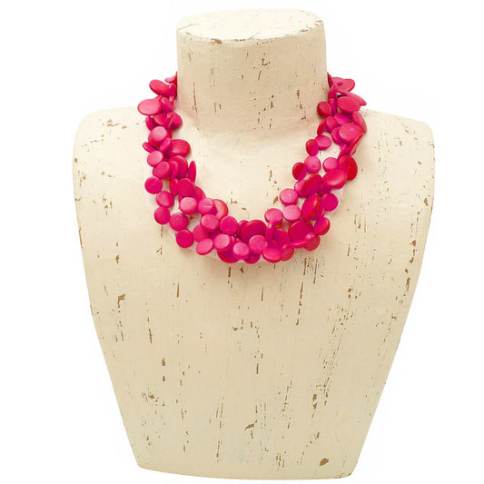 Lotus Feet NC3007 Fuchsia Multi Row Necklace