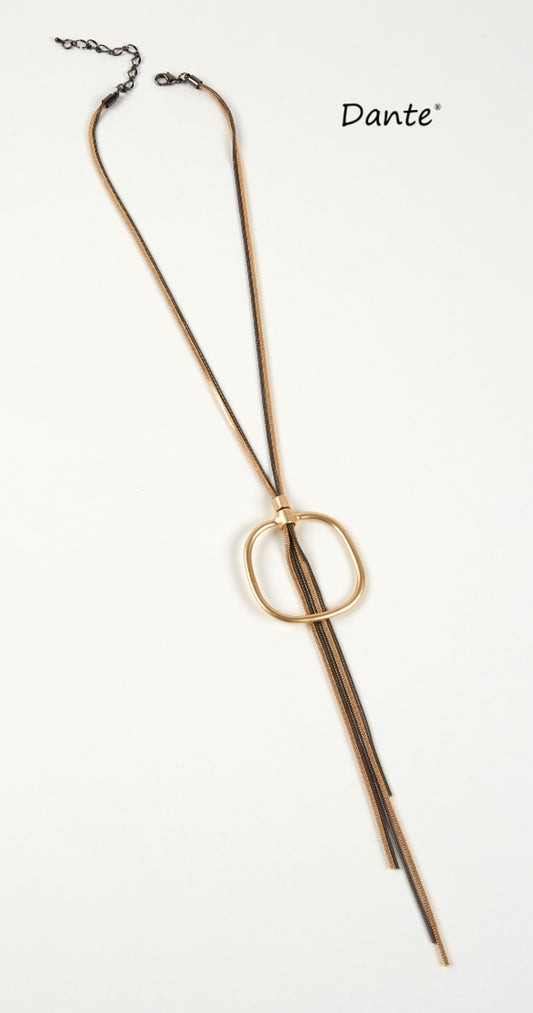Dante Long Silver Chain Necklace with Big Grey Pendant