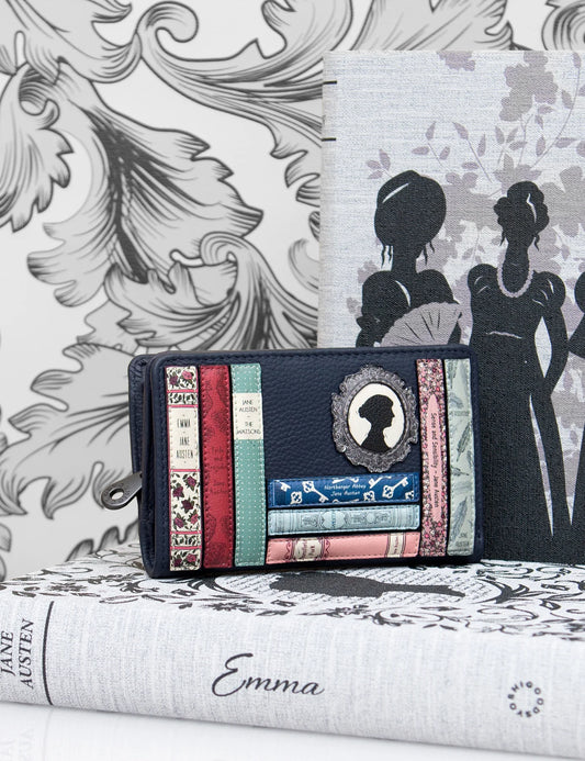 Yoshi Y1089 Jane Austen Navy Bookworm Zip Around Purse