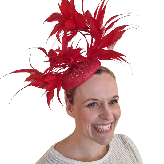 J Bees JB18/040 Red Fascinator with feathers