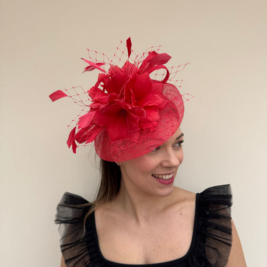 J Bees JB19/759 Poppy Red Large Crin Fascinator