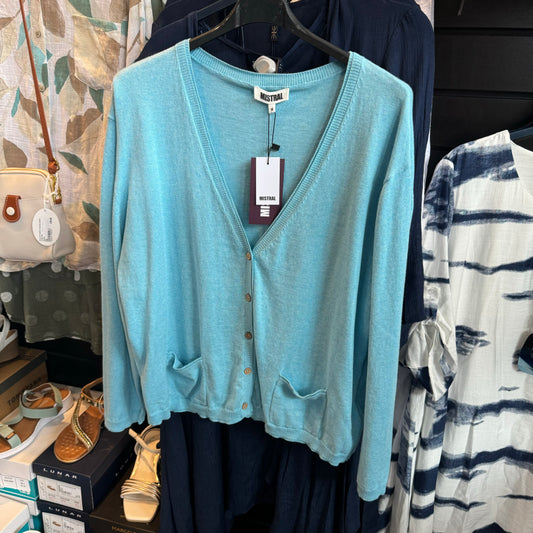 Mistral Aqua Haze Double Rib Detail Melange Cotton Cardi