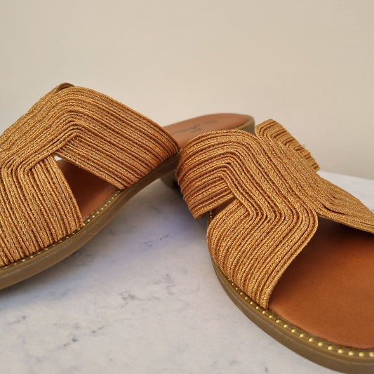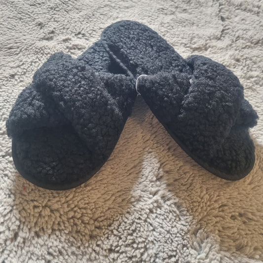 Top Staka Slip on Criss Cross Sandal in Faux Leather Black or White Available