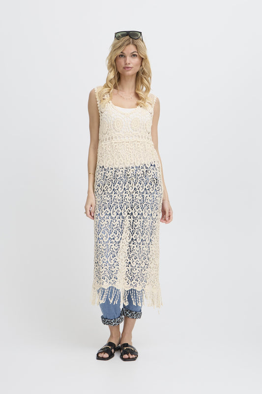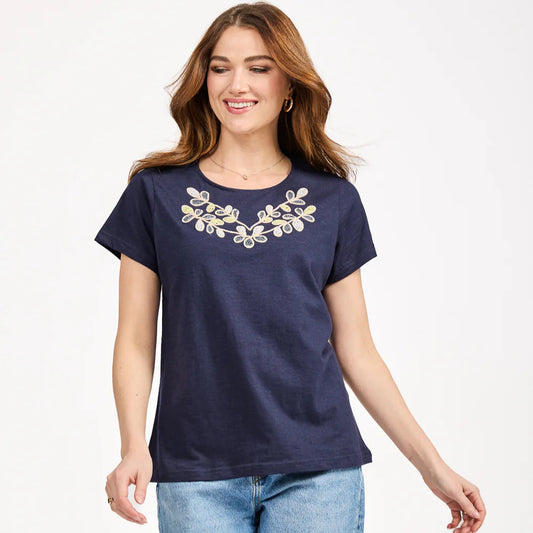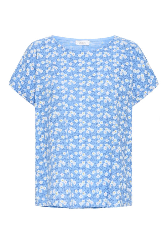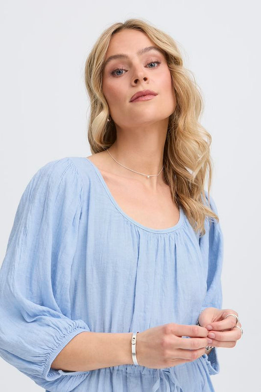 Malissa J WF2115 Denim Blue Crinkle Notch Neck Dress