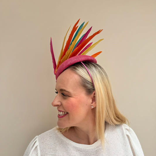 Rainbow Feather Pillbox Hat Pink Multi