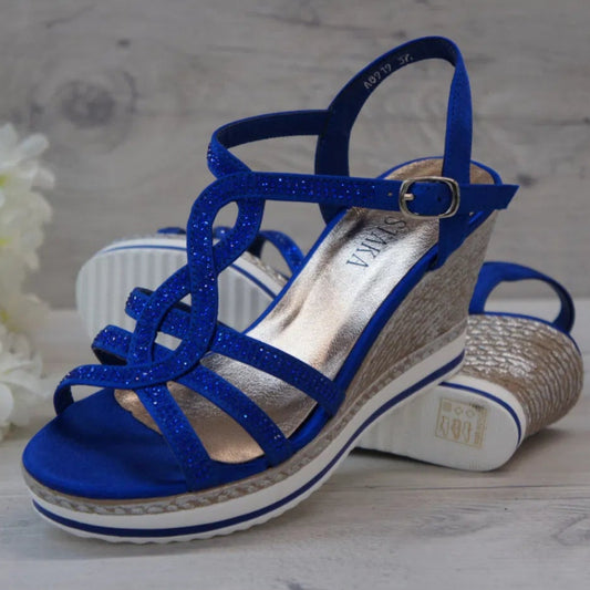 Jo & Joe Cape Verde Navy Glitter Wedge Sandal
