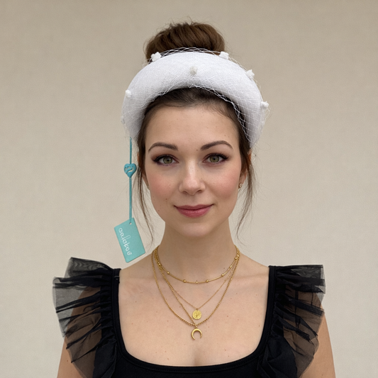 Max and Ellie BF3 Small Fascinator on Headband in White
