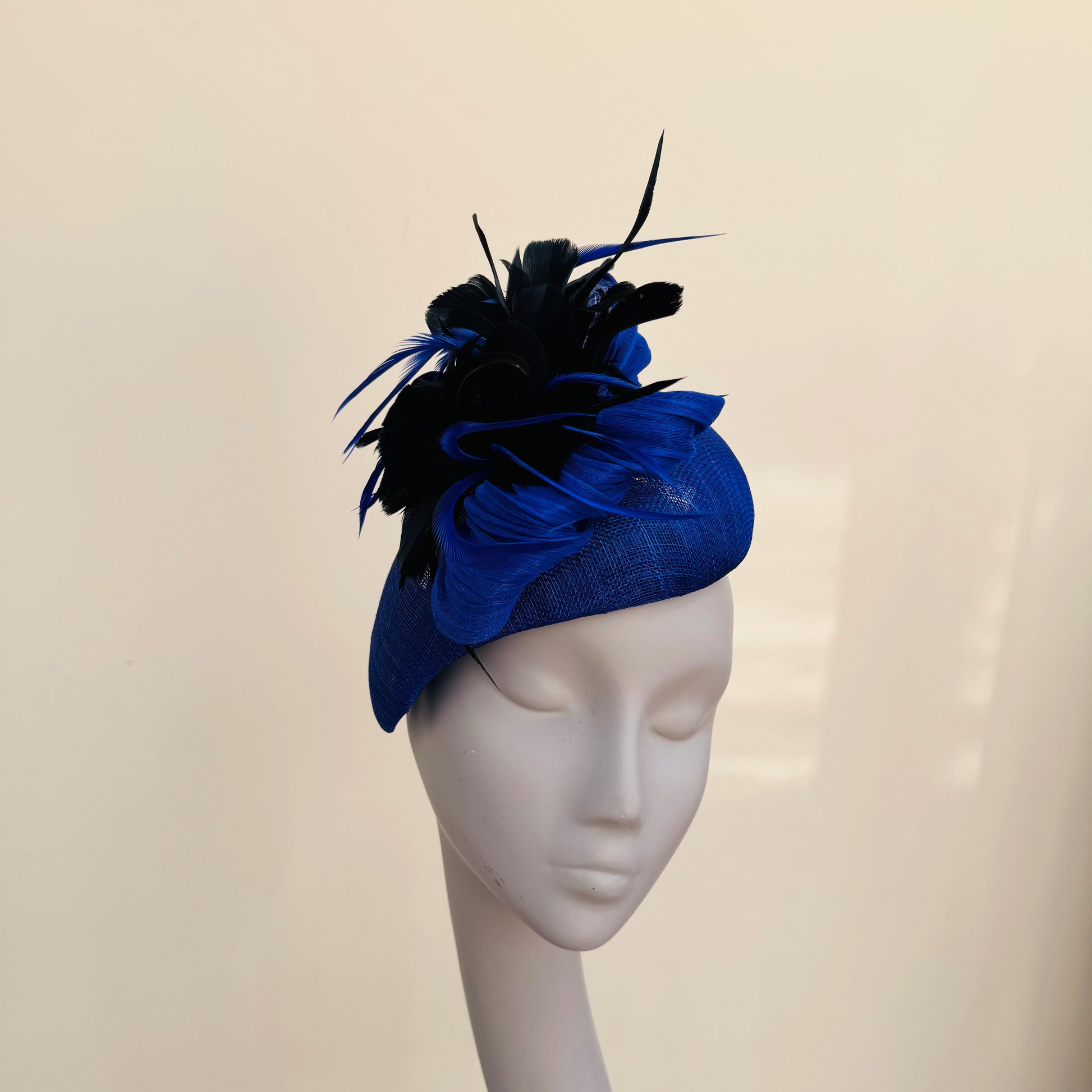 Boardmans Fernley Cobalt Blue/Black Pillbox with Contrast Feathers