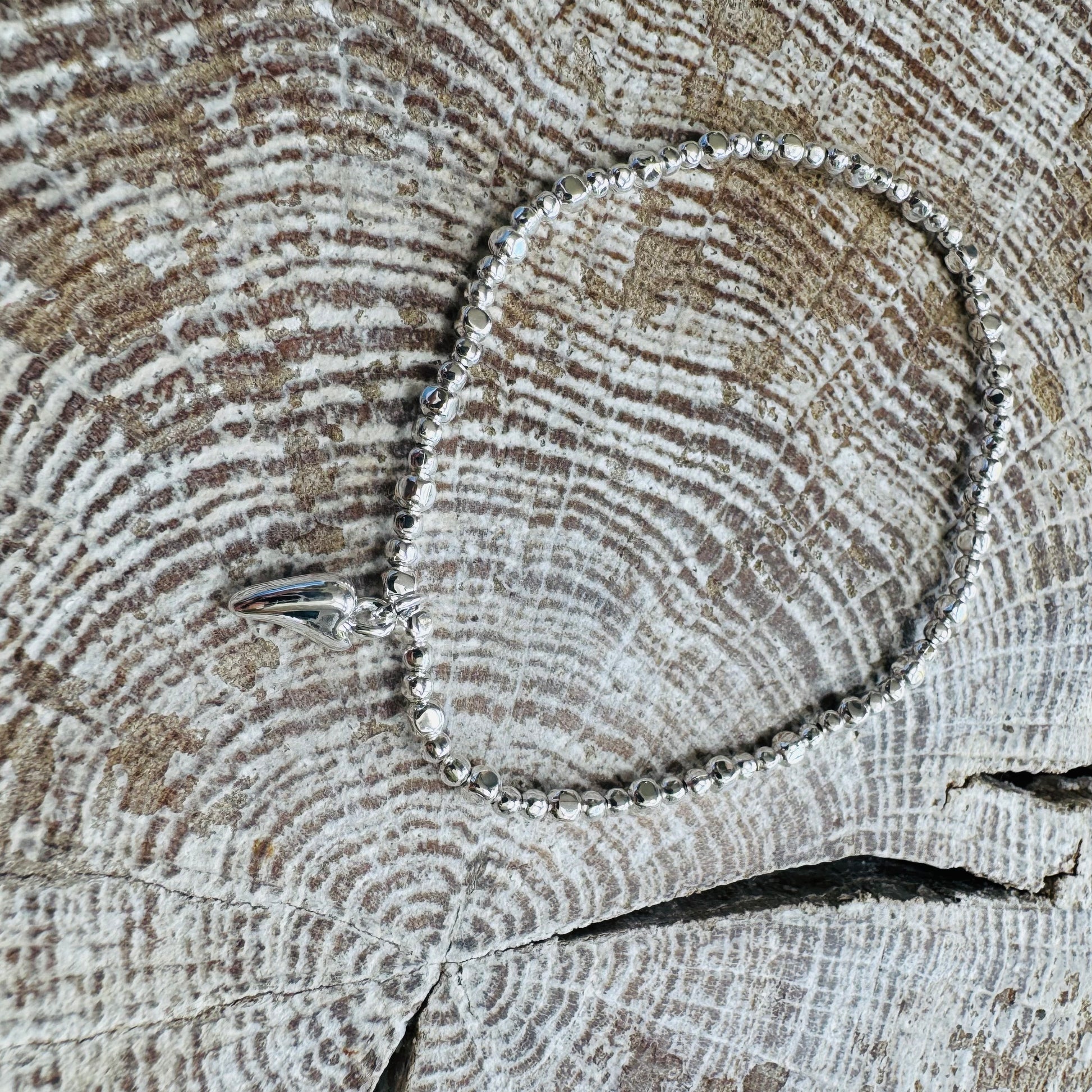 - Silver Coloured Stretch, Beaded, Slip On Bracelet