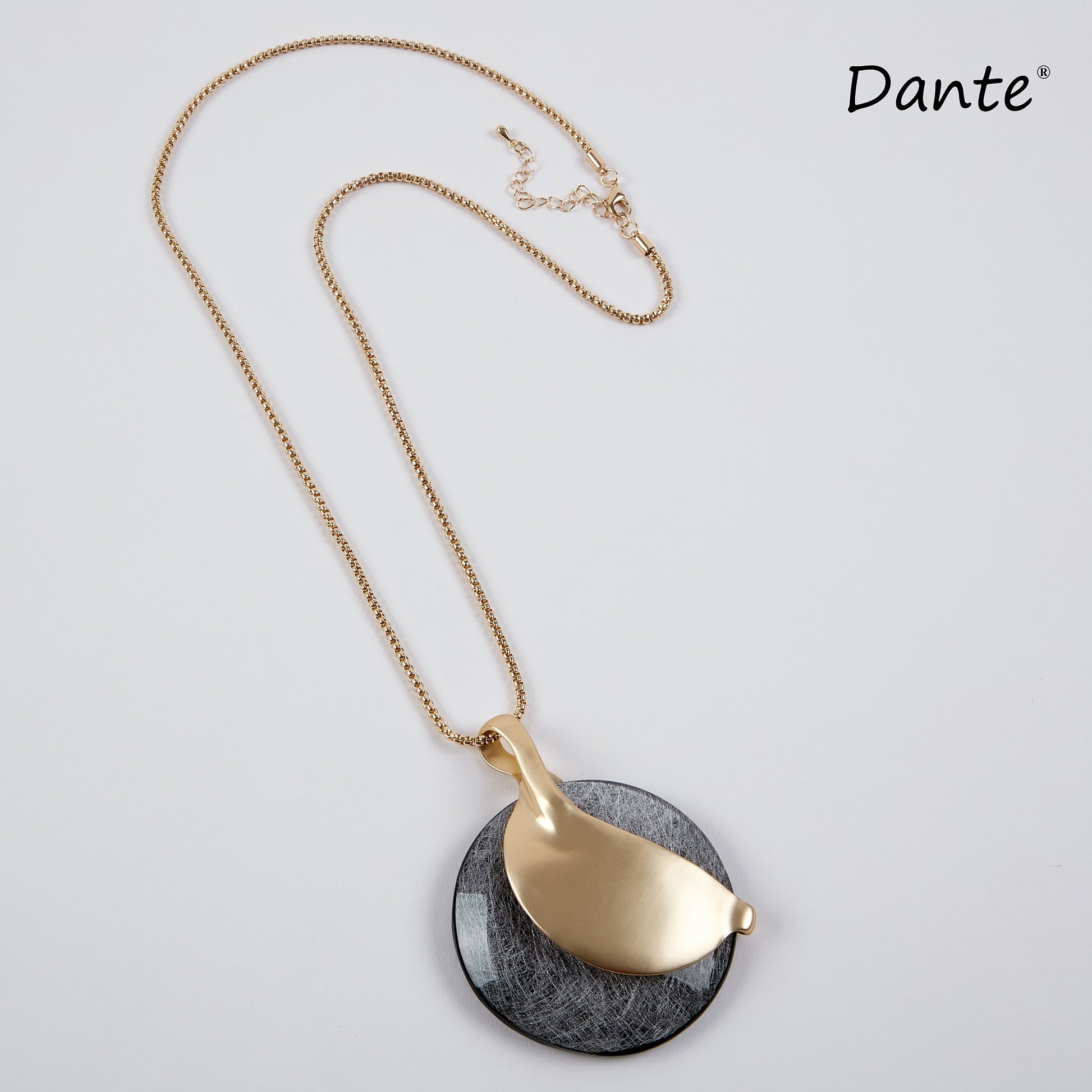 Dante Long Gold Chain Necklace with Grey Pendant Nl48680