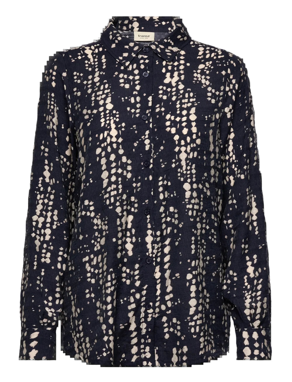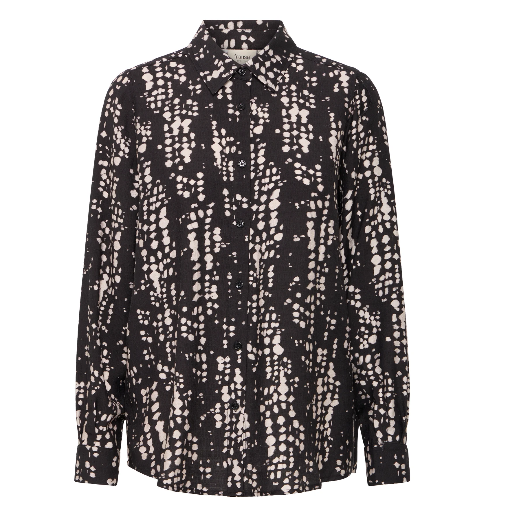Stone tie dye shirt by Fransa with button fastening, long sleeves and slightly dipped hem to the back.