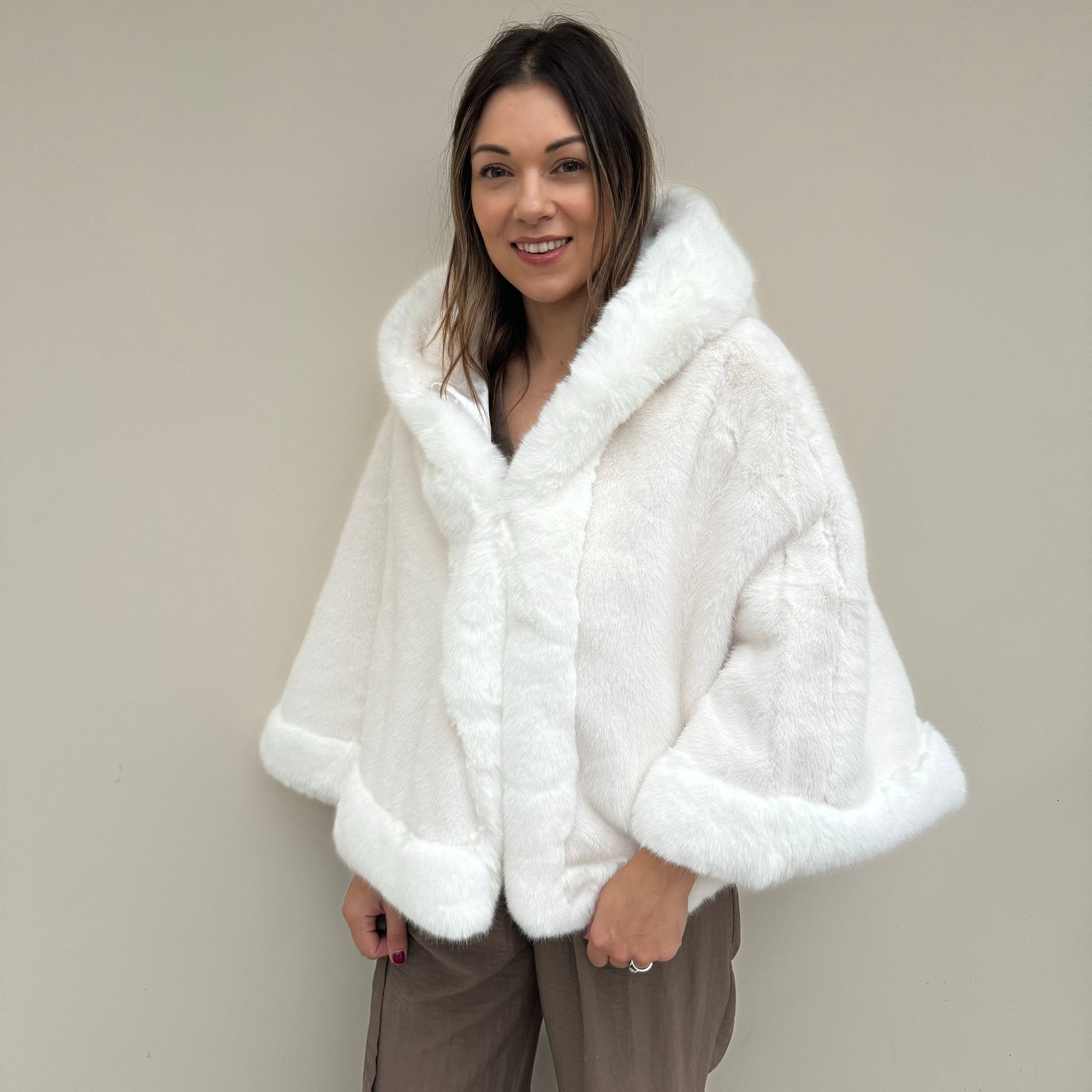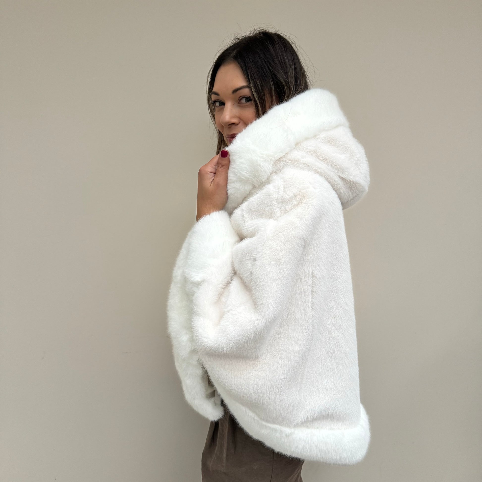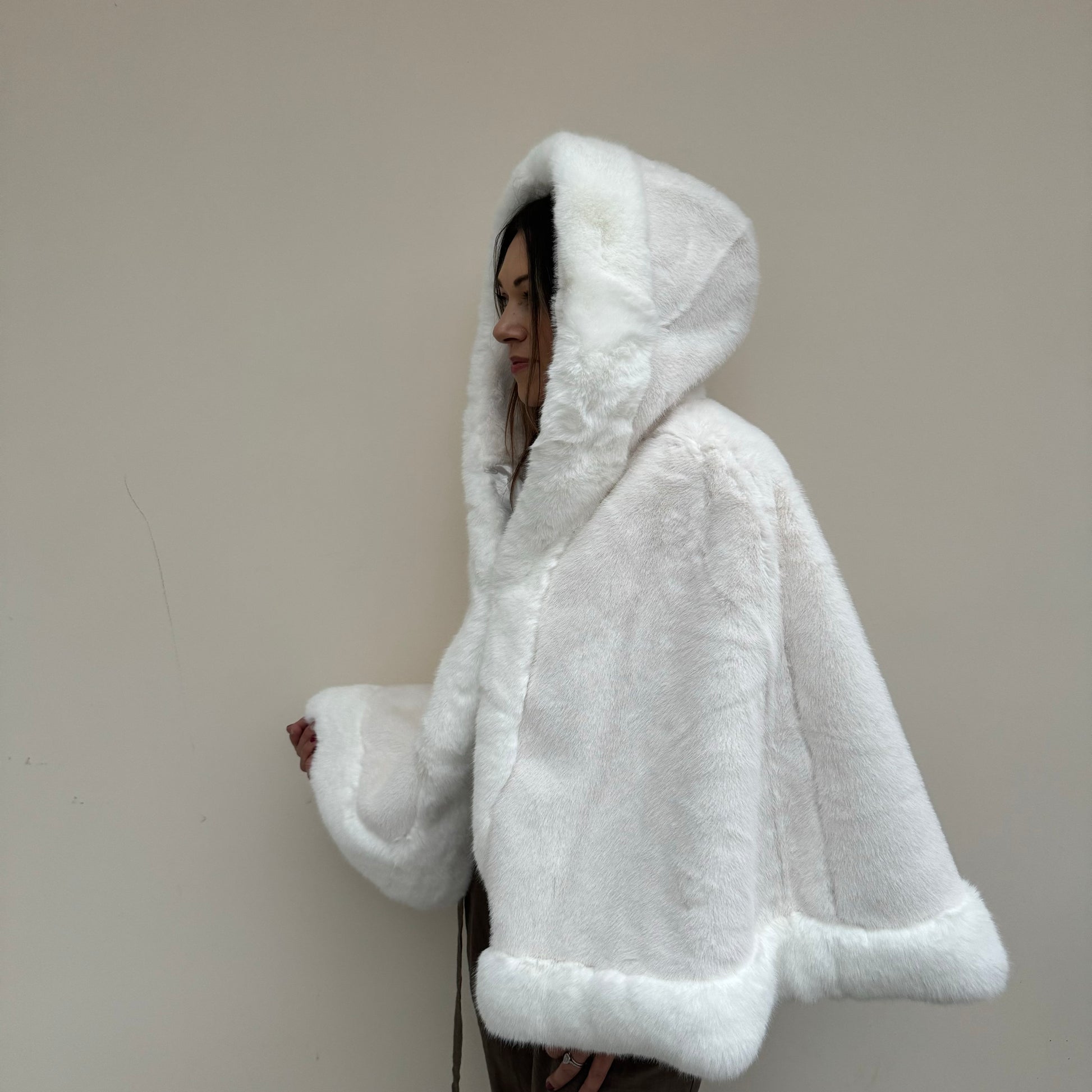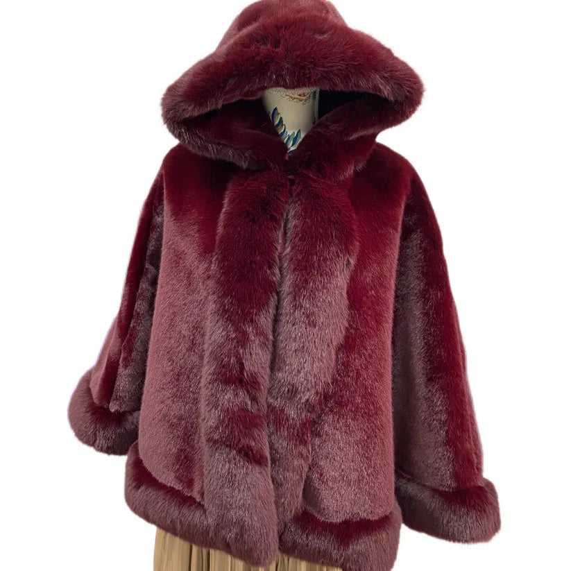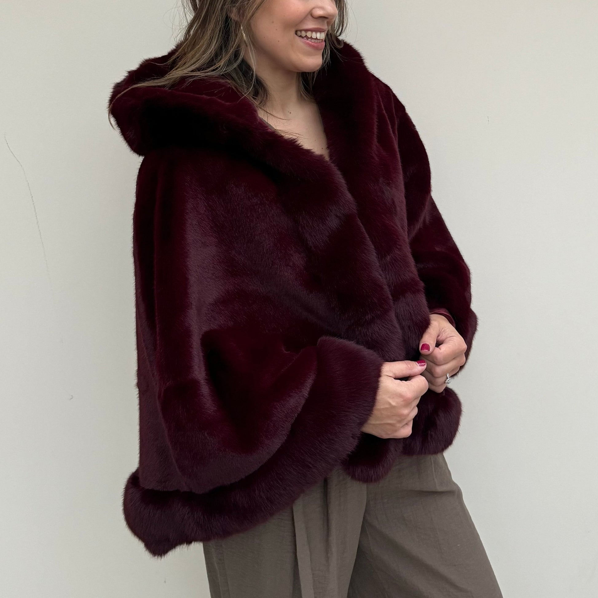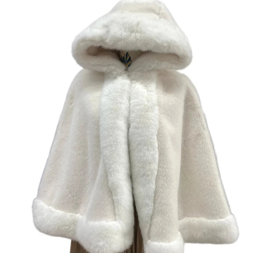 Stay warm and elegant with our Faux Fur Poncho with Hood. This stylish poncho combines luxurious faux fur with a practical hood for added warmth and comfort. The relaxed fit and plush texture make it a perfect layering piece for chilly days, offering both sophistication and cosiness. Ideal for retailers seeking a fashionable outerwear option that exudes timeless winter charm.