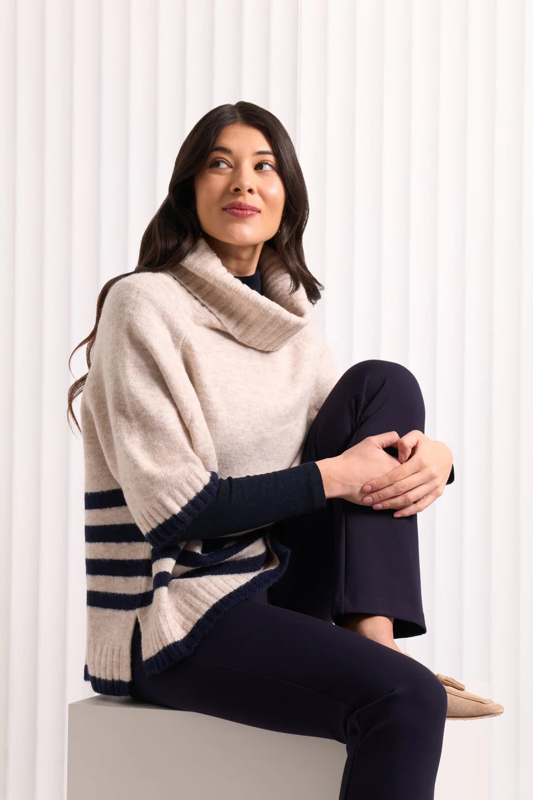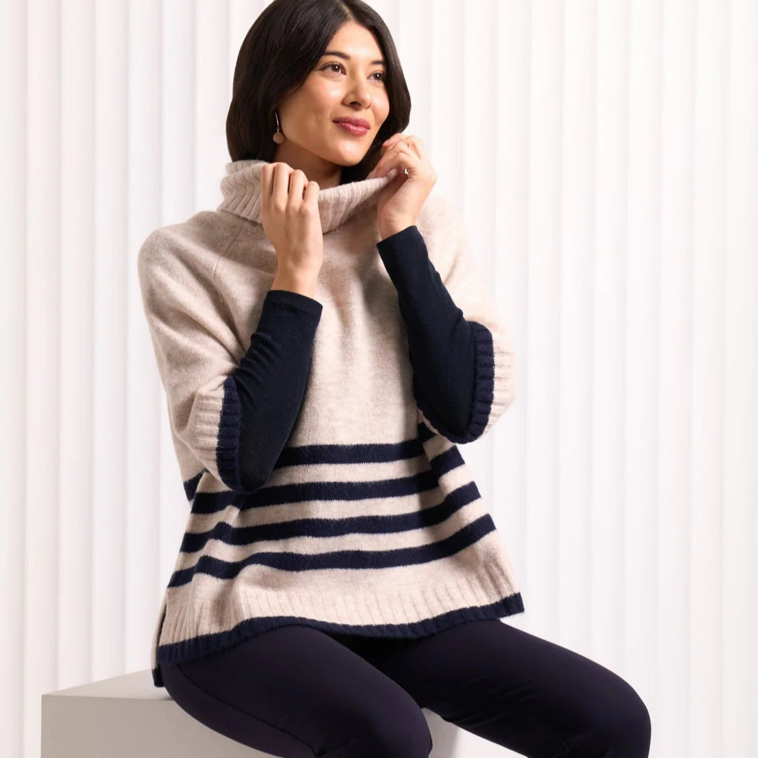 This Foil Plus One Popover Jumper in Oat and Midnight offers a cosy, casual style perfect for everyday wear. Featuring a soft, over-the-head knit design with short sleeves and a high neck, it combines comfort with a relaxed fit. The breathable knit fabric keeps you warm without overheating, making it ideal for layering or wearing on its own. Its versatile colours and simple silhouette make it easy to pair with your favourite jeans or skirts for effortless style.