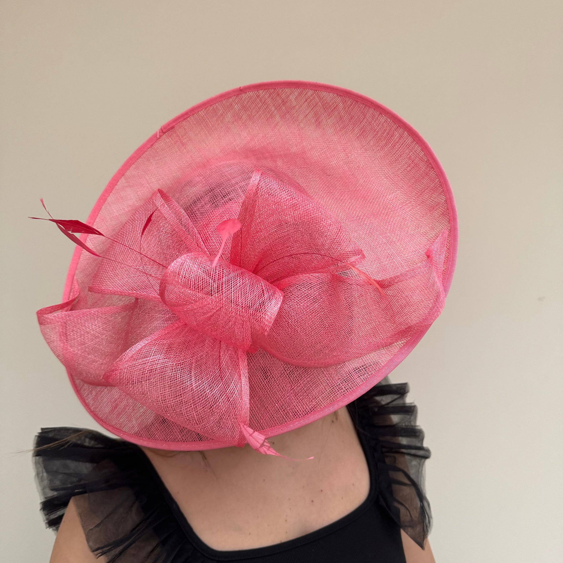 A gorgeous large bow and feathers, adorns the top of this gorgeous hatinator. Available in a range of colours.