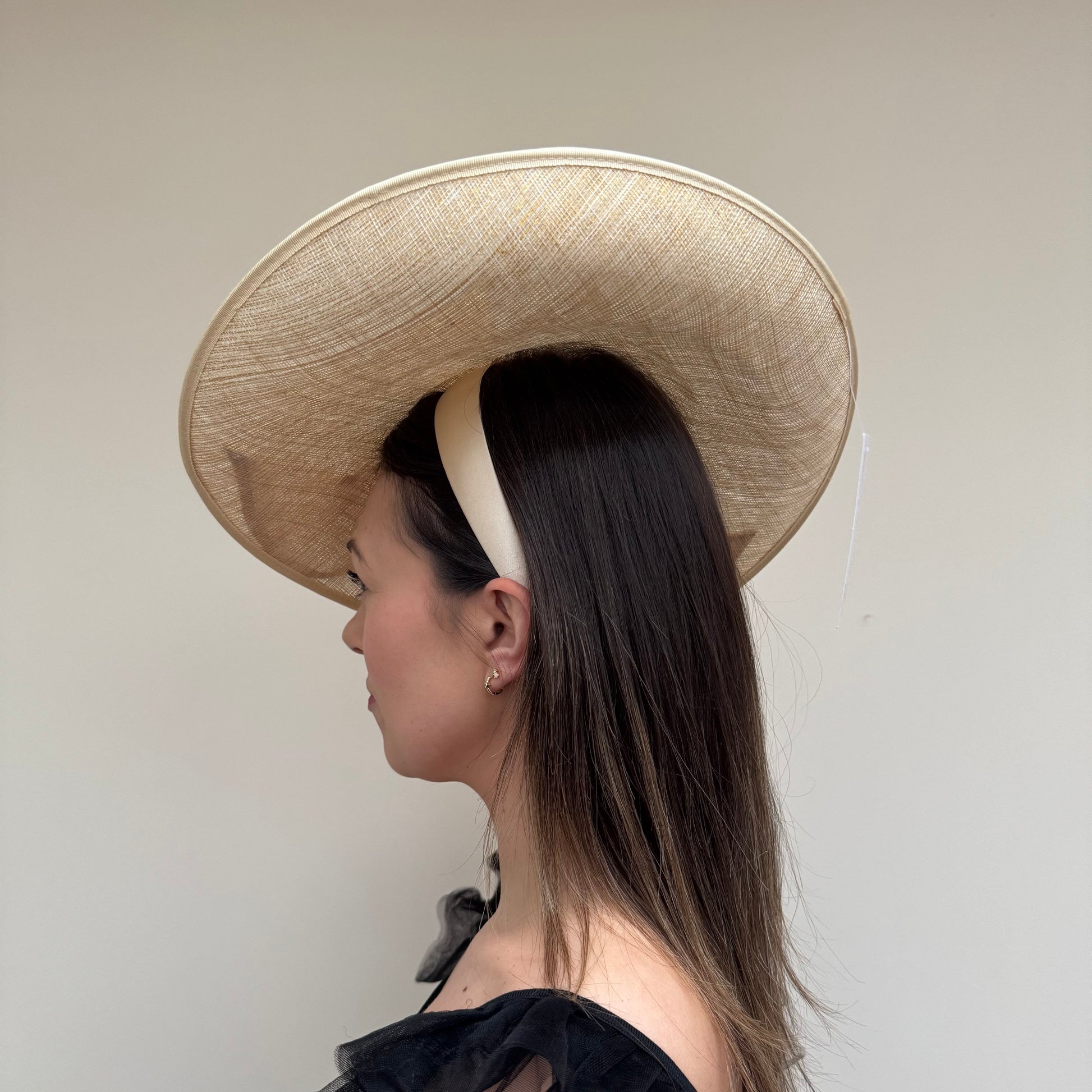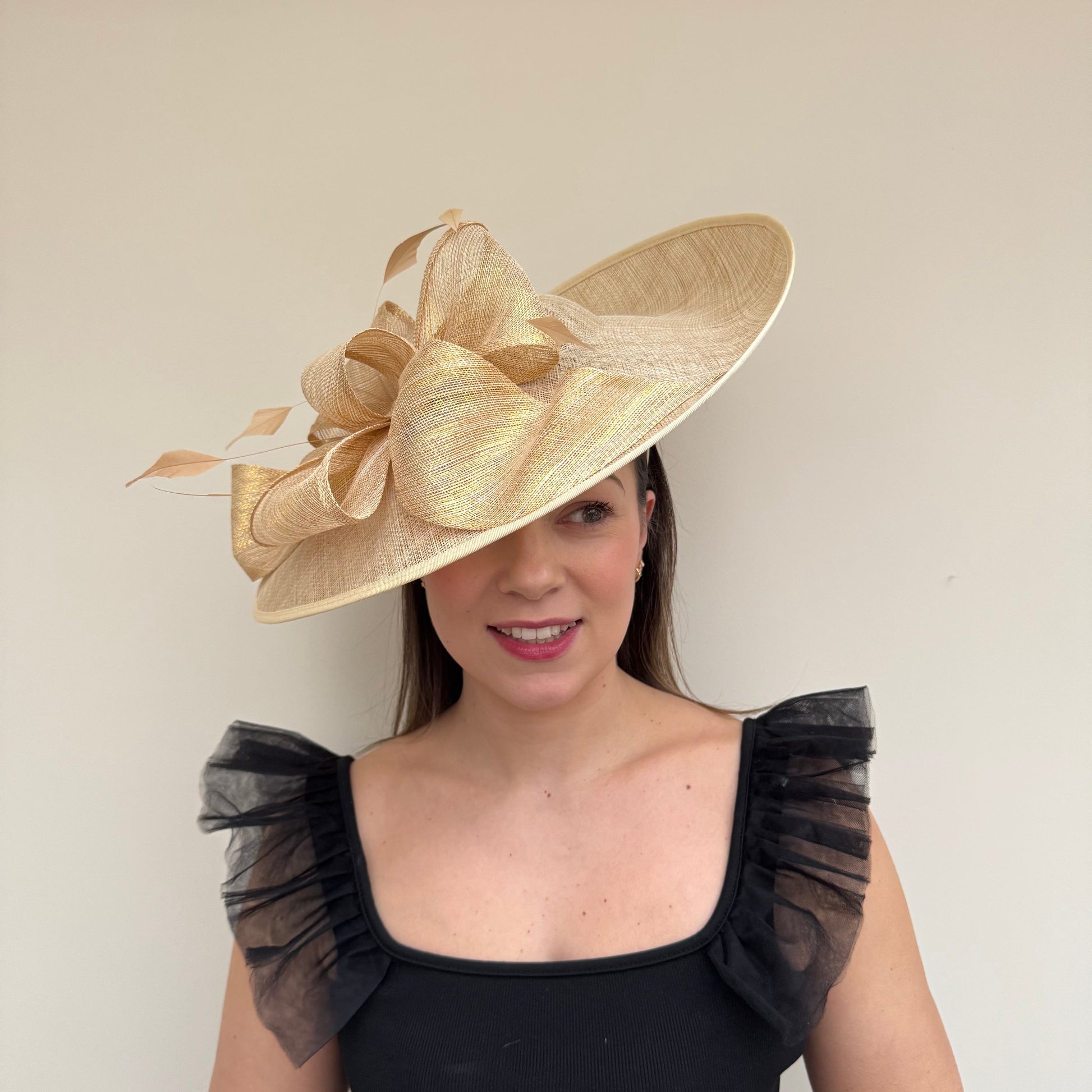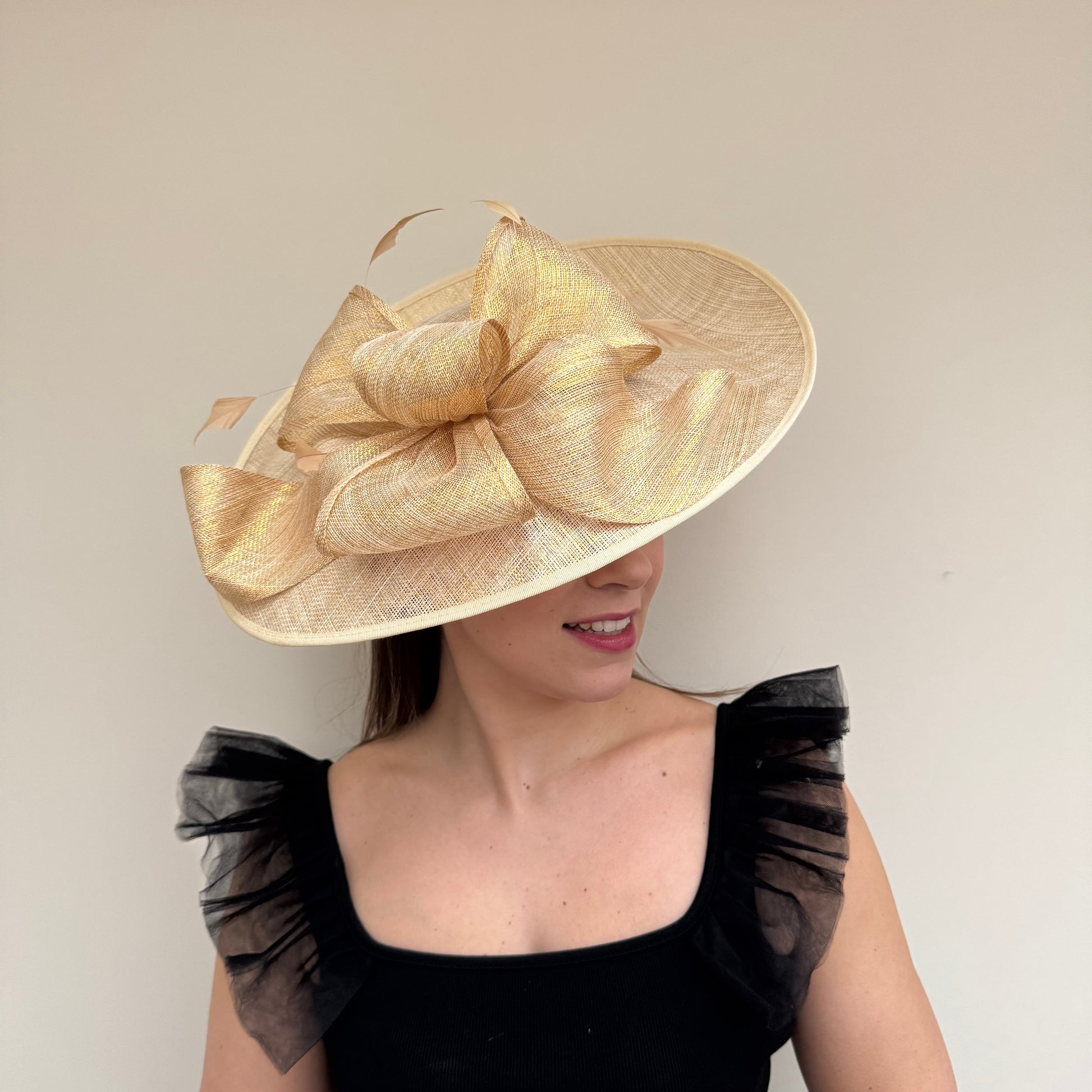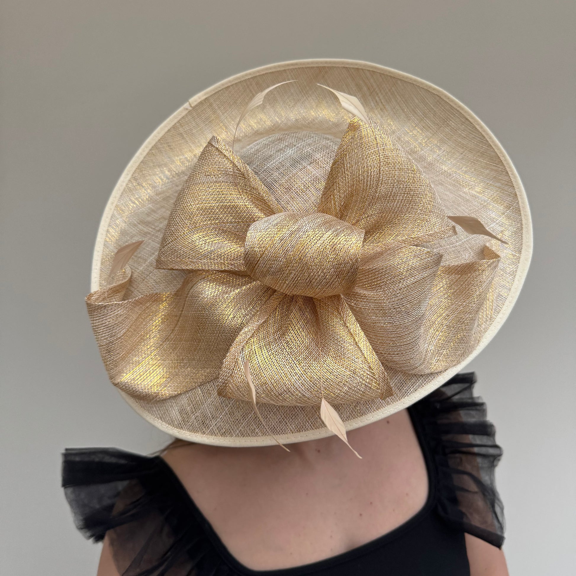 A gorgeous large bow and feathers, adorns the top of this gorgeous hatinator. Available in a range of colours.