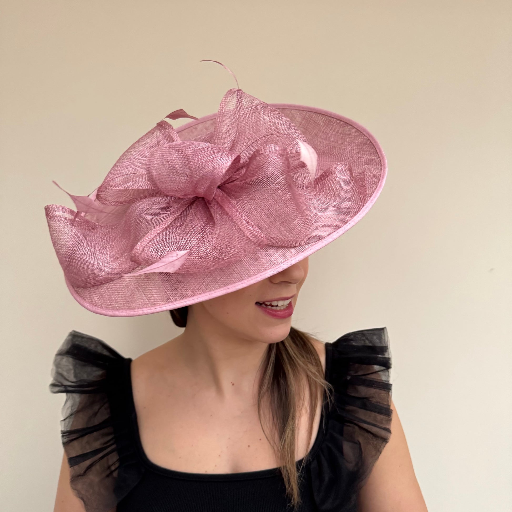 A gorgeous large bow and feathers, adorns the top of this gorgeous hatinator. Available in a range of colours.