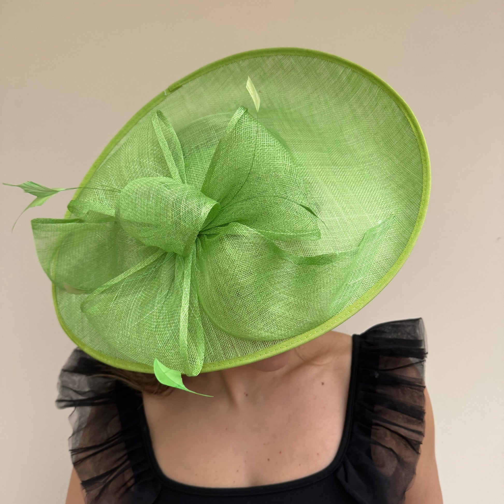 A gorgeous large bow and feathers, adorns the top of this gorgeous hatinator. Available in a range of colours.