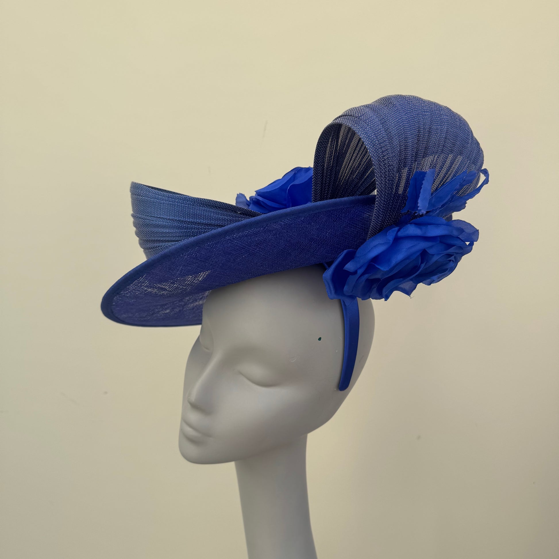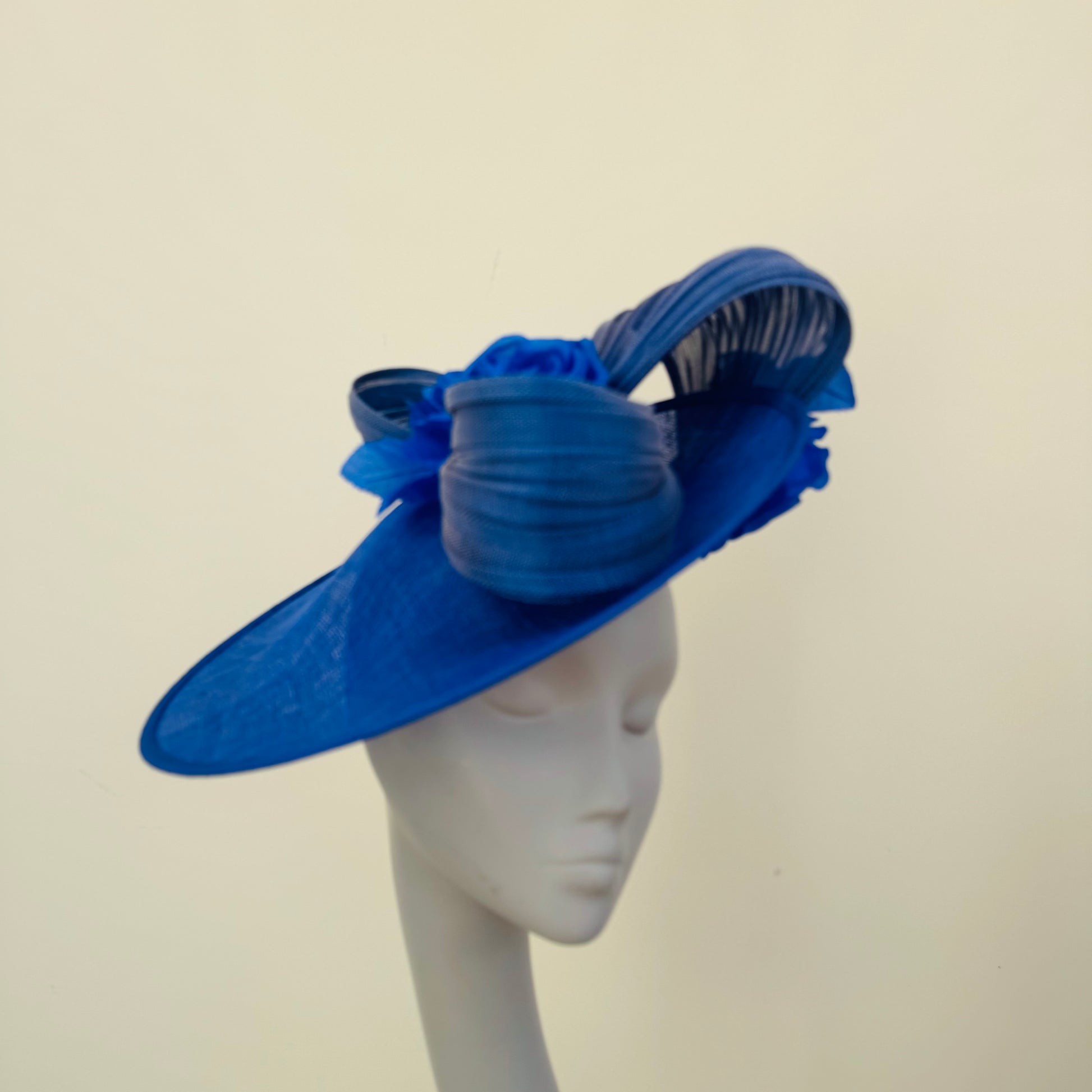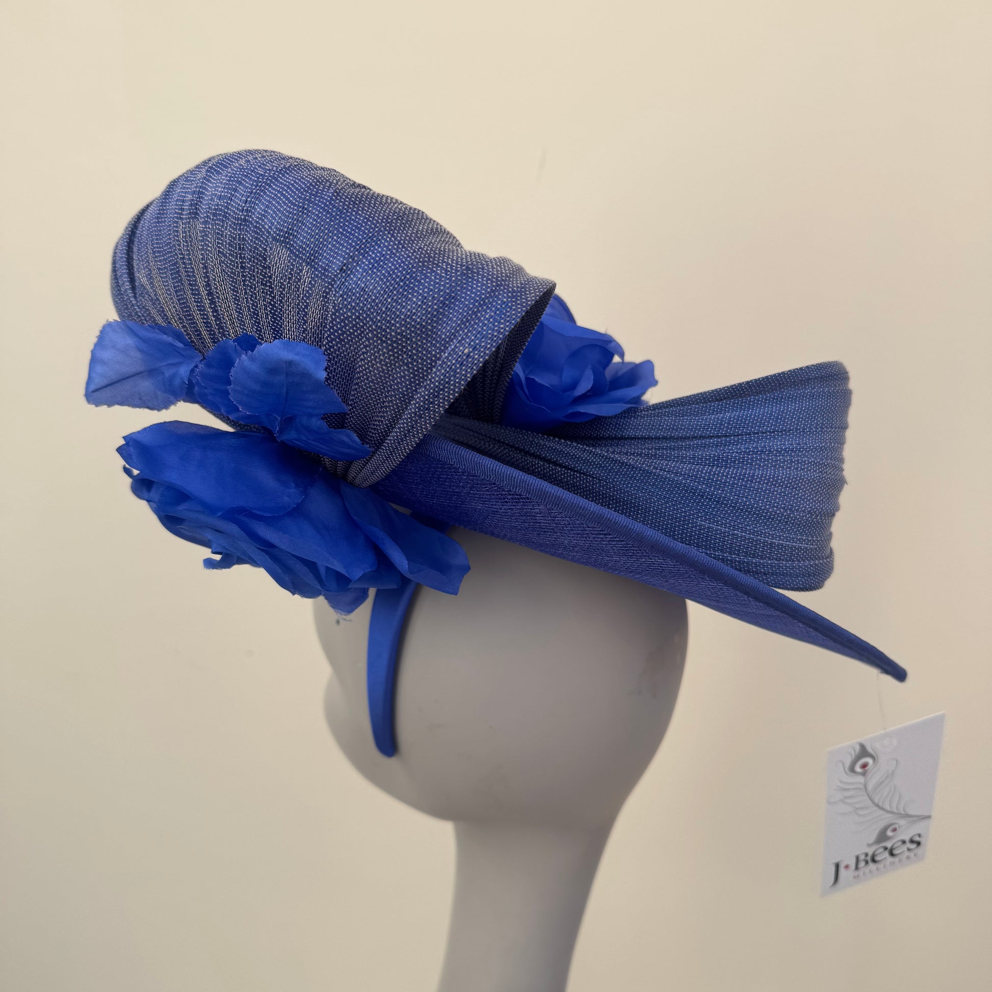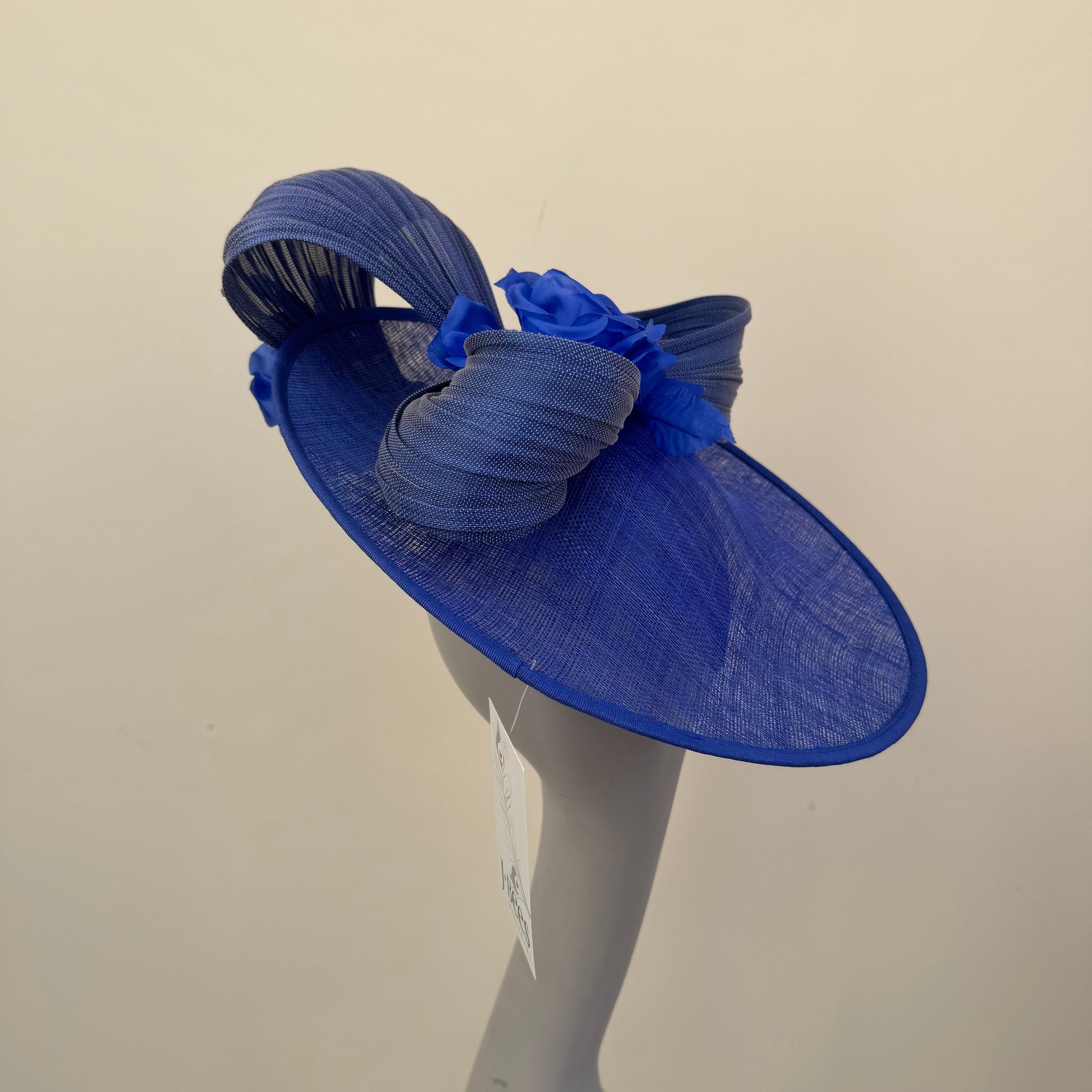 J Bees JB25/59 Cobalt Blue Disc Hatinator with Ribbon and Rose Detail
