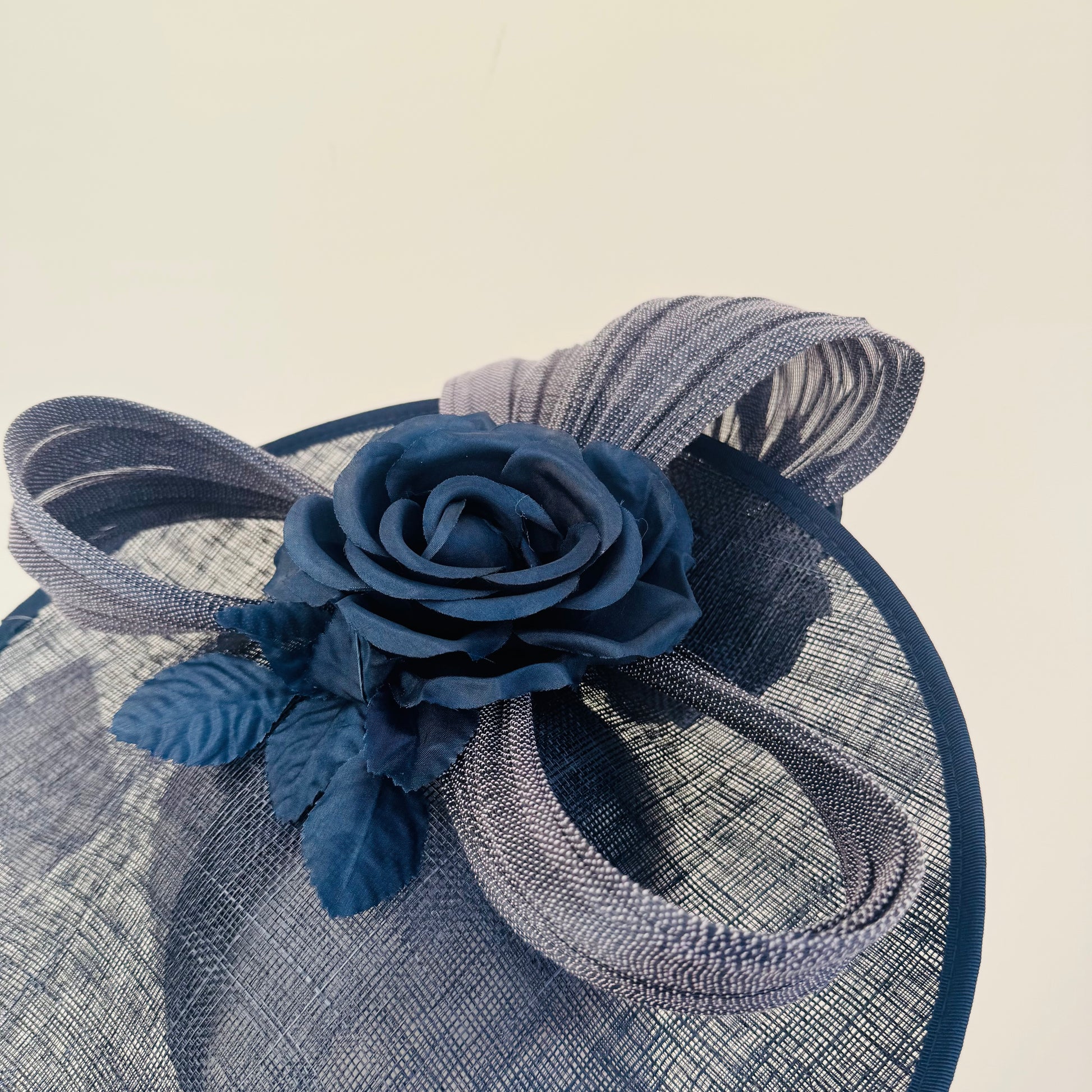 J Bees JB25/59 Navy Blue Disc Hatinator with Ribbon and Rose Detail