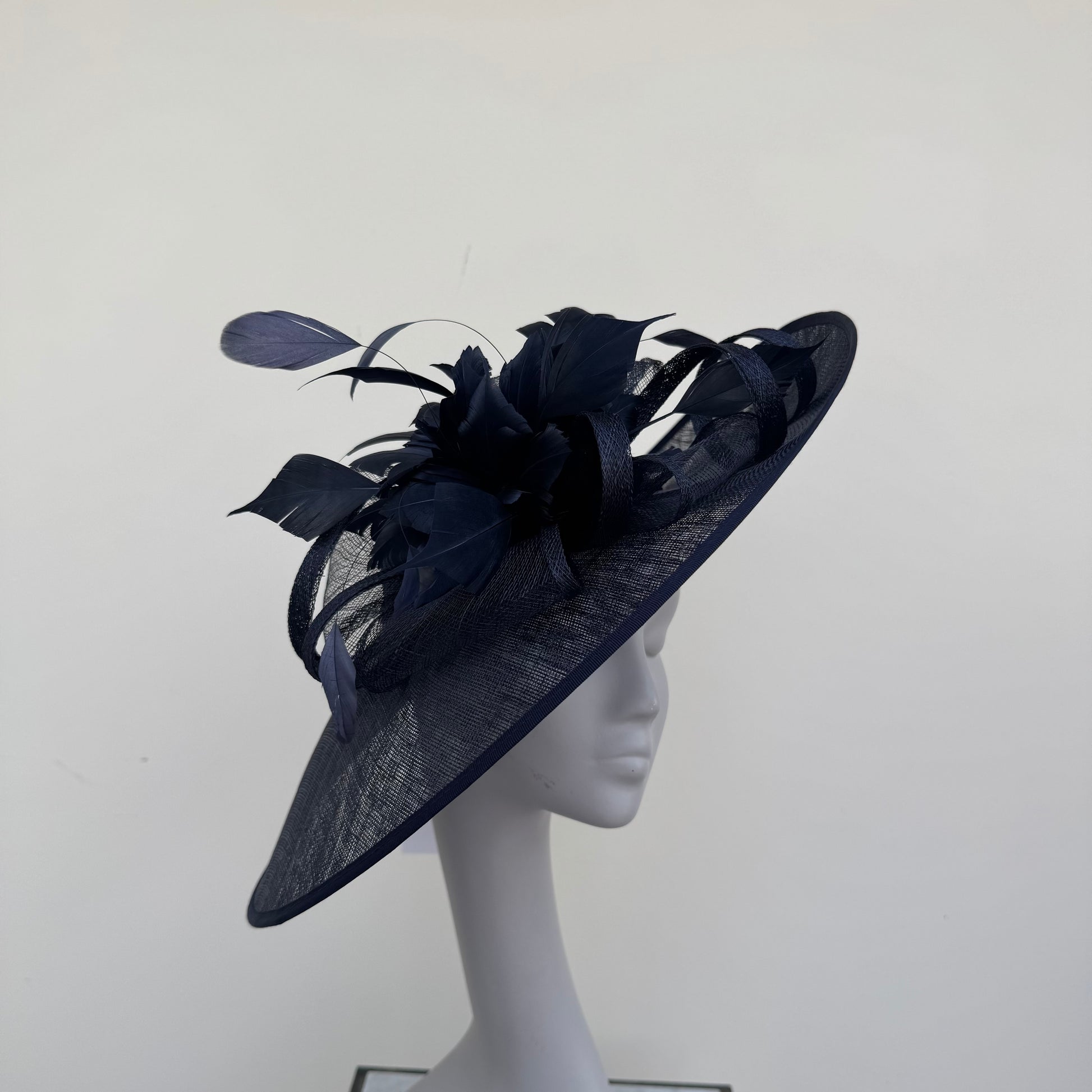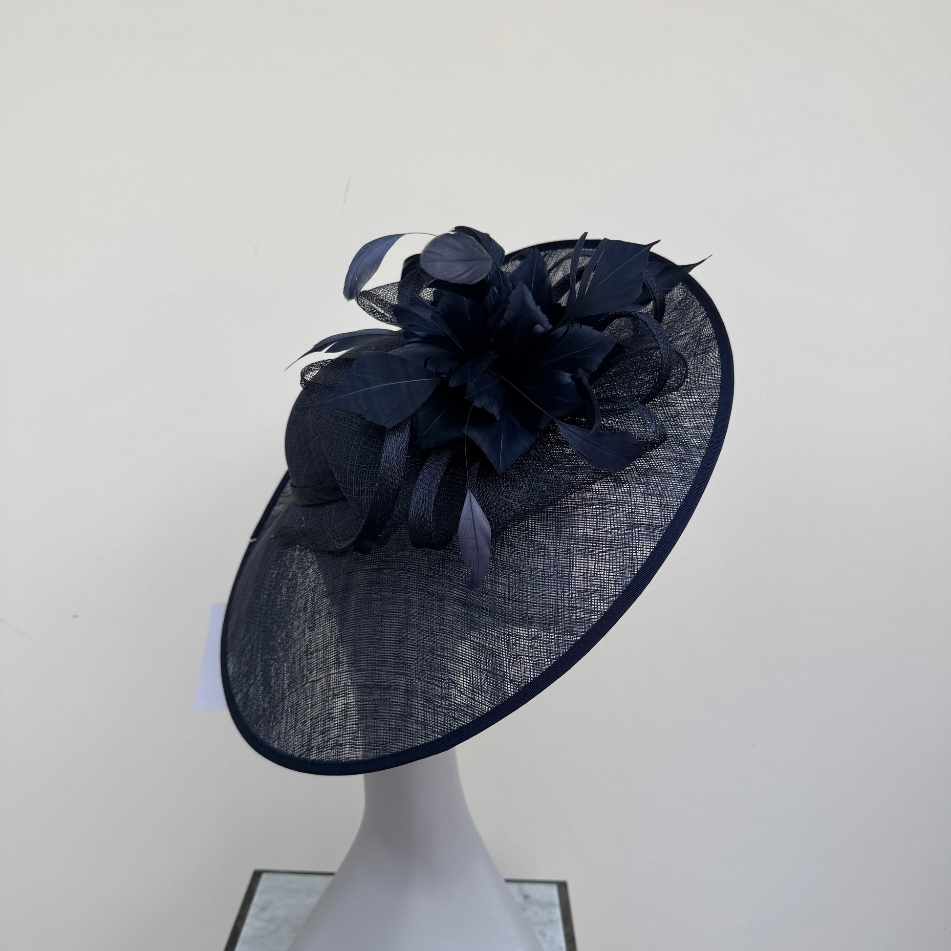 J Bees JB25/85 Navy Blue Hatinator with Feather Flower Detail