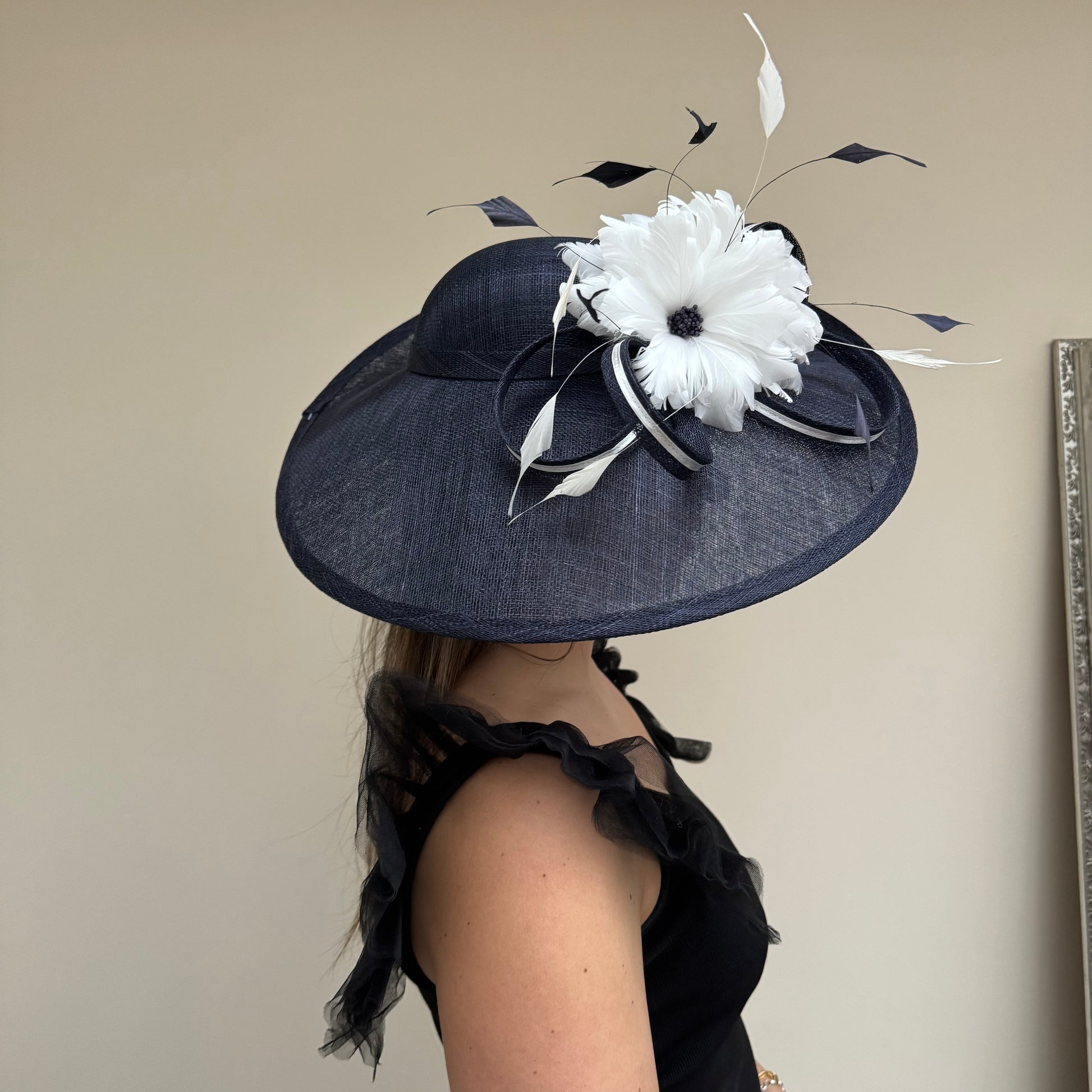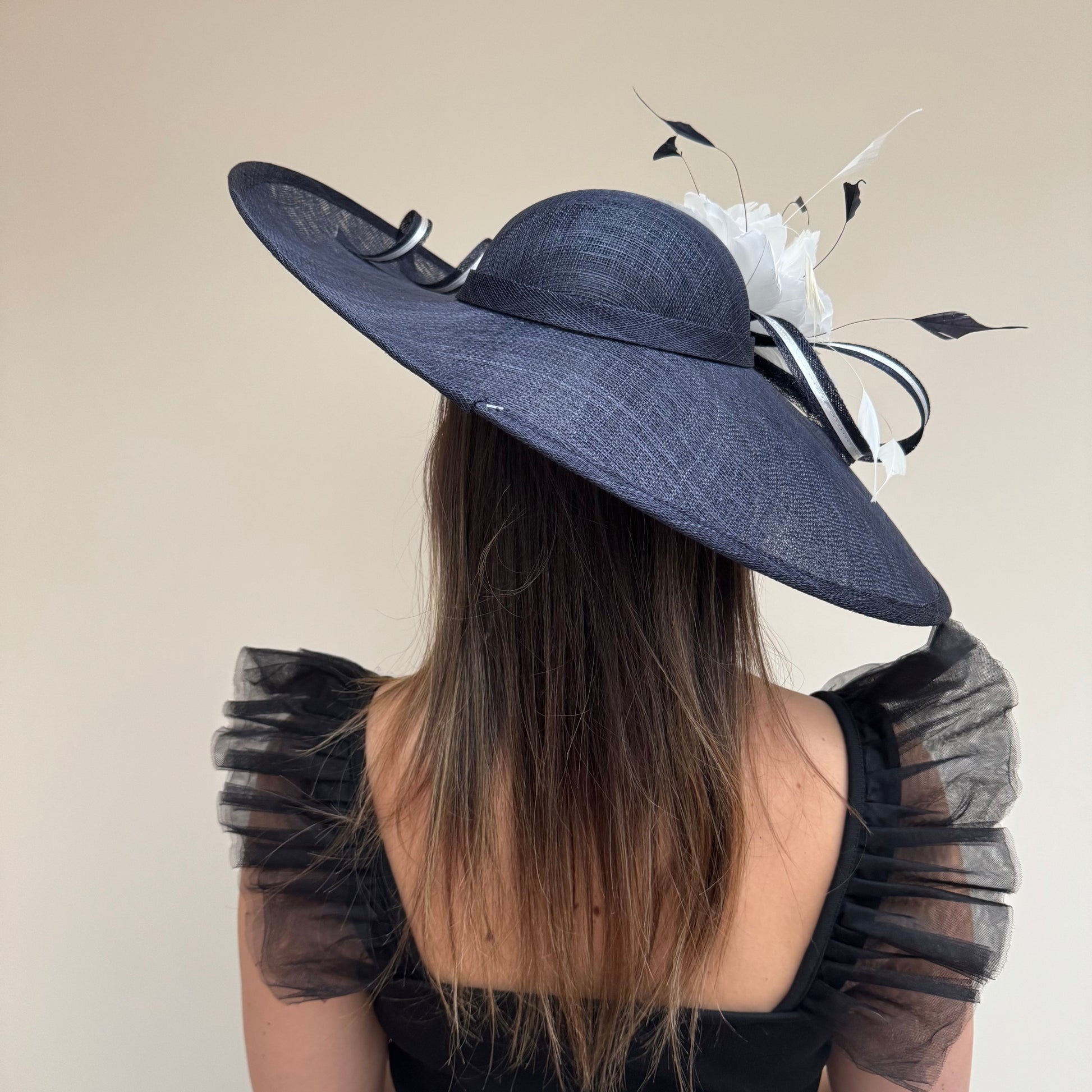 J Bees JB26/1020 Navy Blue & White Feather and Ribbon Hatinator