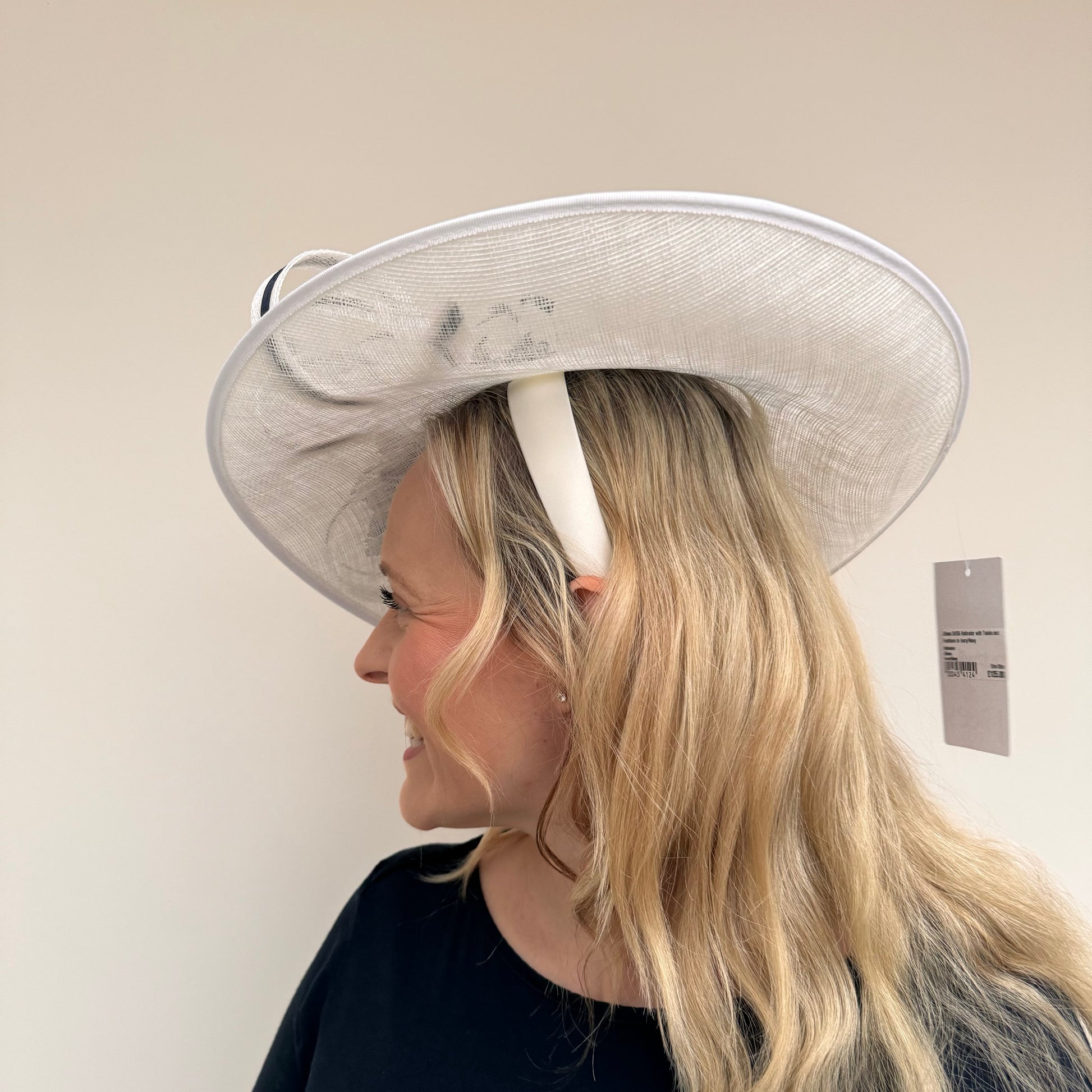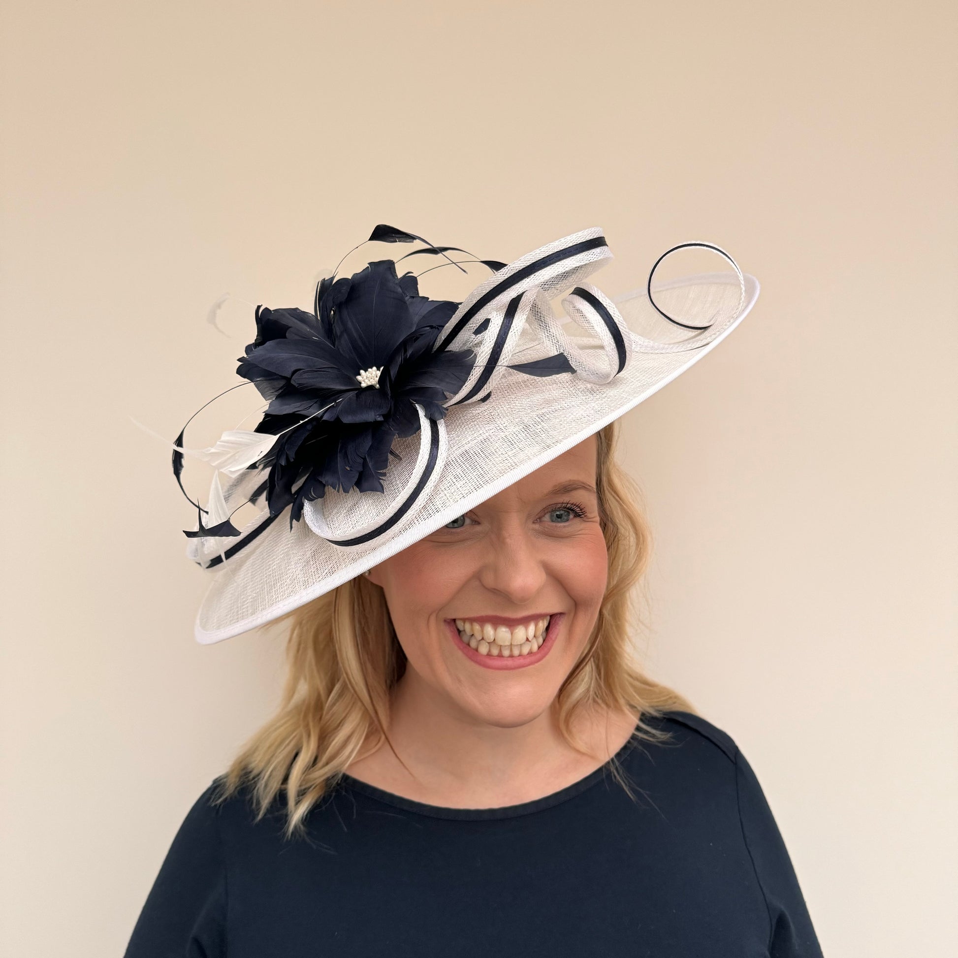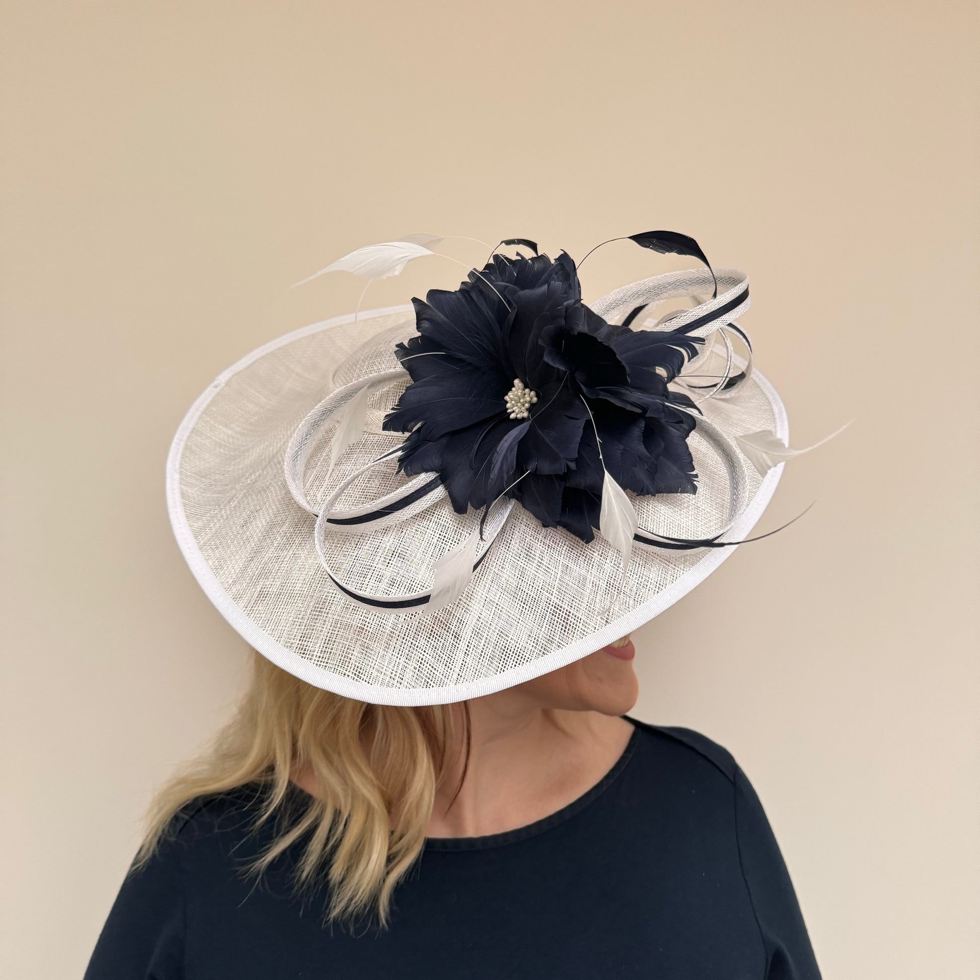 JBees 24/58 Hatinator with Twists and Feathers In Ivory/Navy