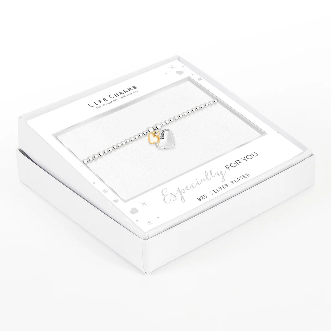 Beautiful beaded bracelet with large and small puffed hearts crafted in gold and silver with attention to detail and aesthetic appeal. To add to the luxury experience, each piece of jewellery includes a complimentary gift box.
