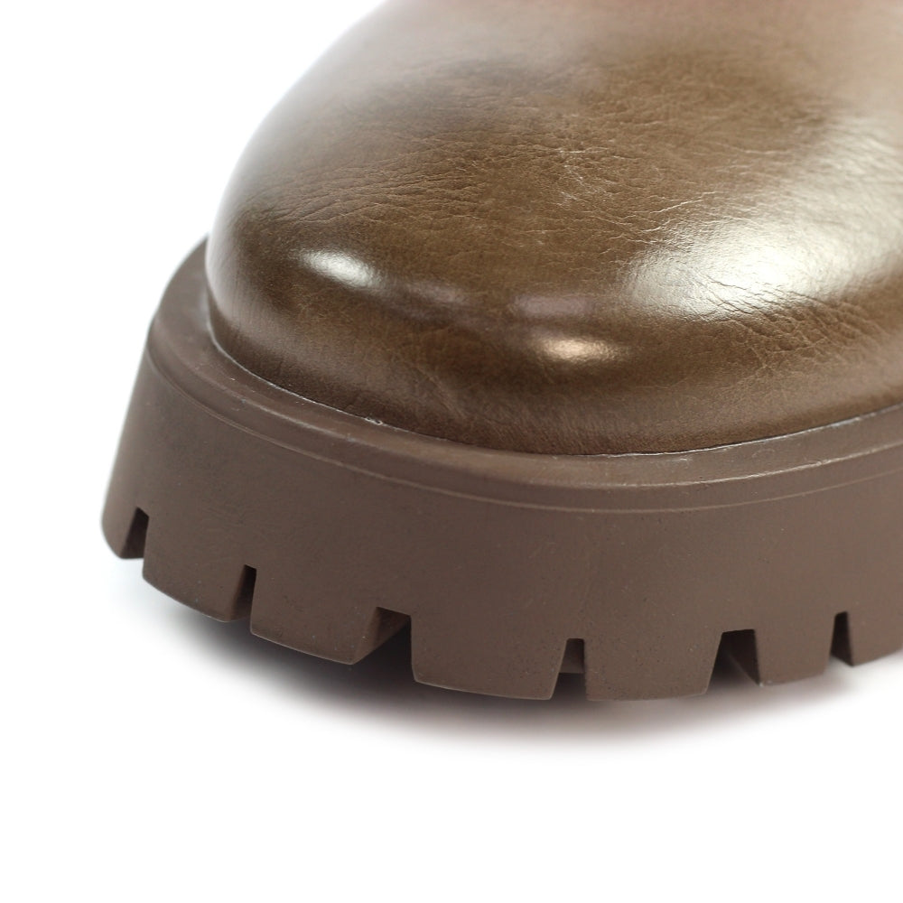 Sleek and versatile, the Tetris ankle boot is designed for everyday wear. With a chunky sole and a burnished finish, this boot pairs seamlessly with jeans, a maxi skirt or knitted dress. The ribbed side panels provide flexibility for an easy fit.